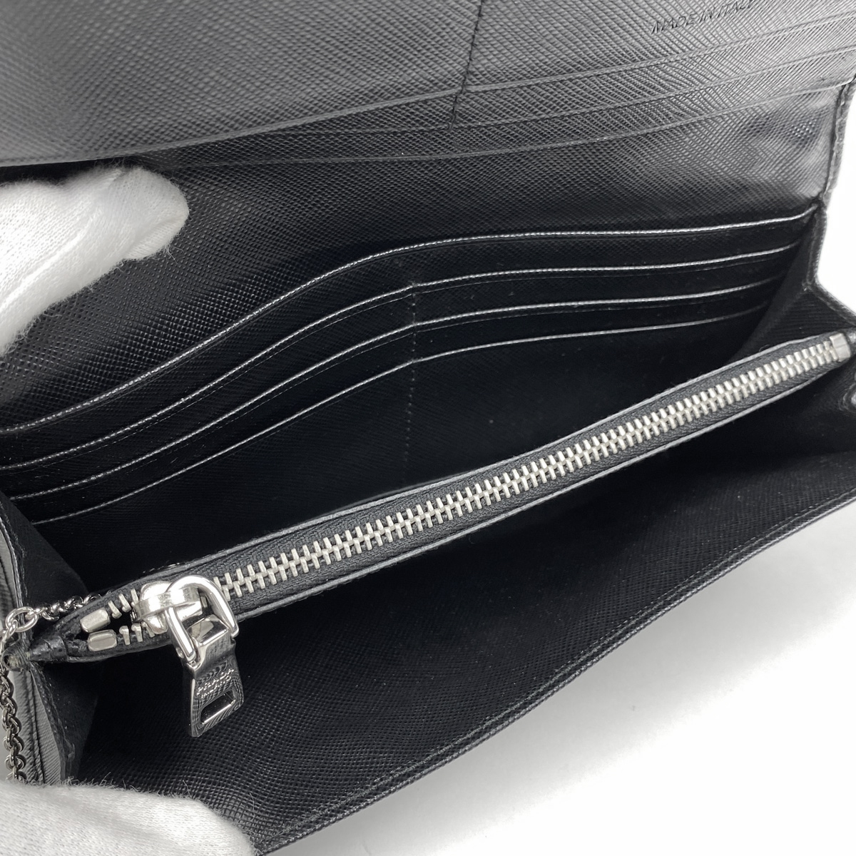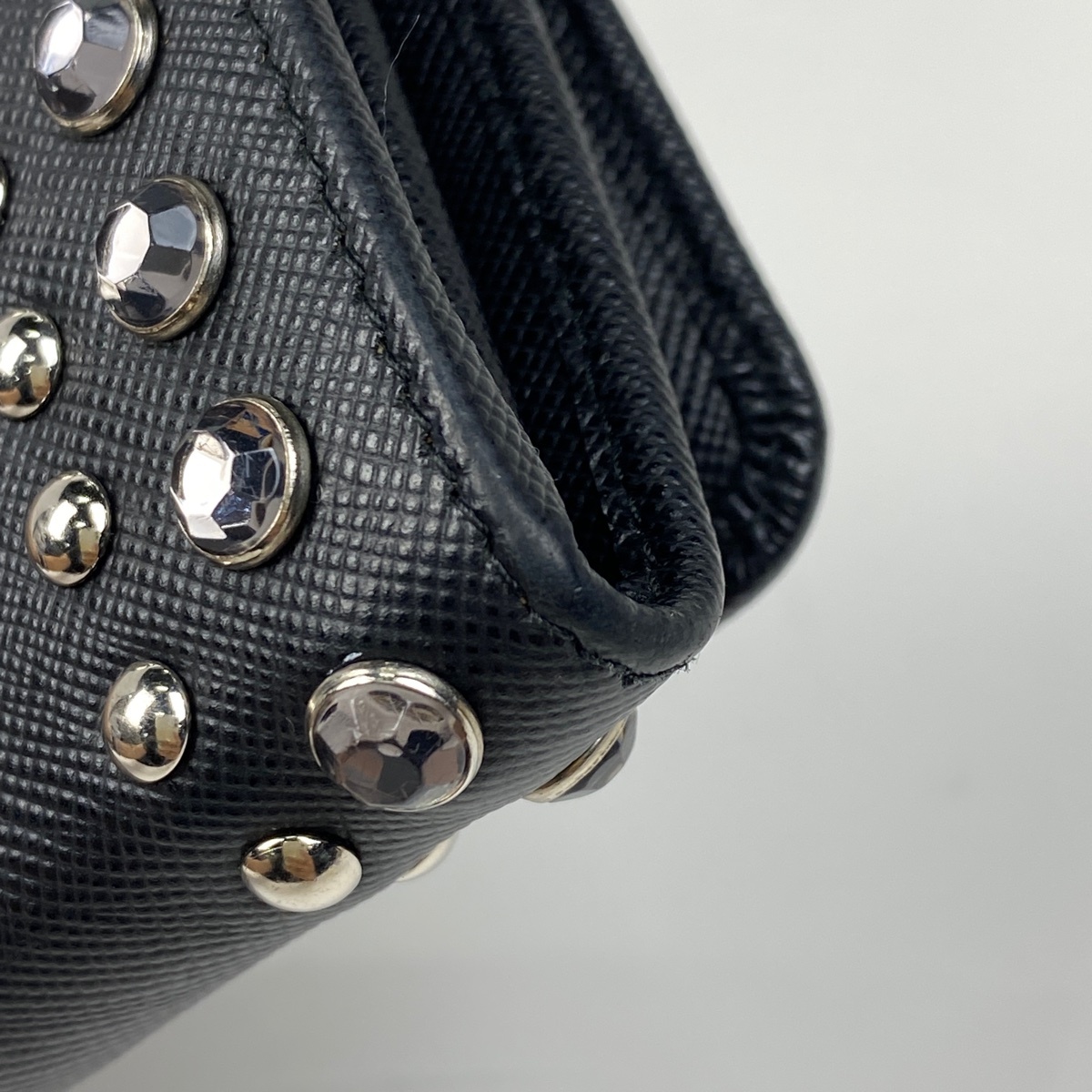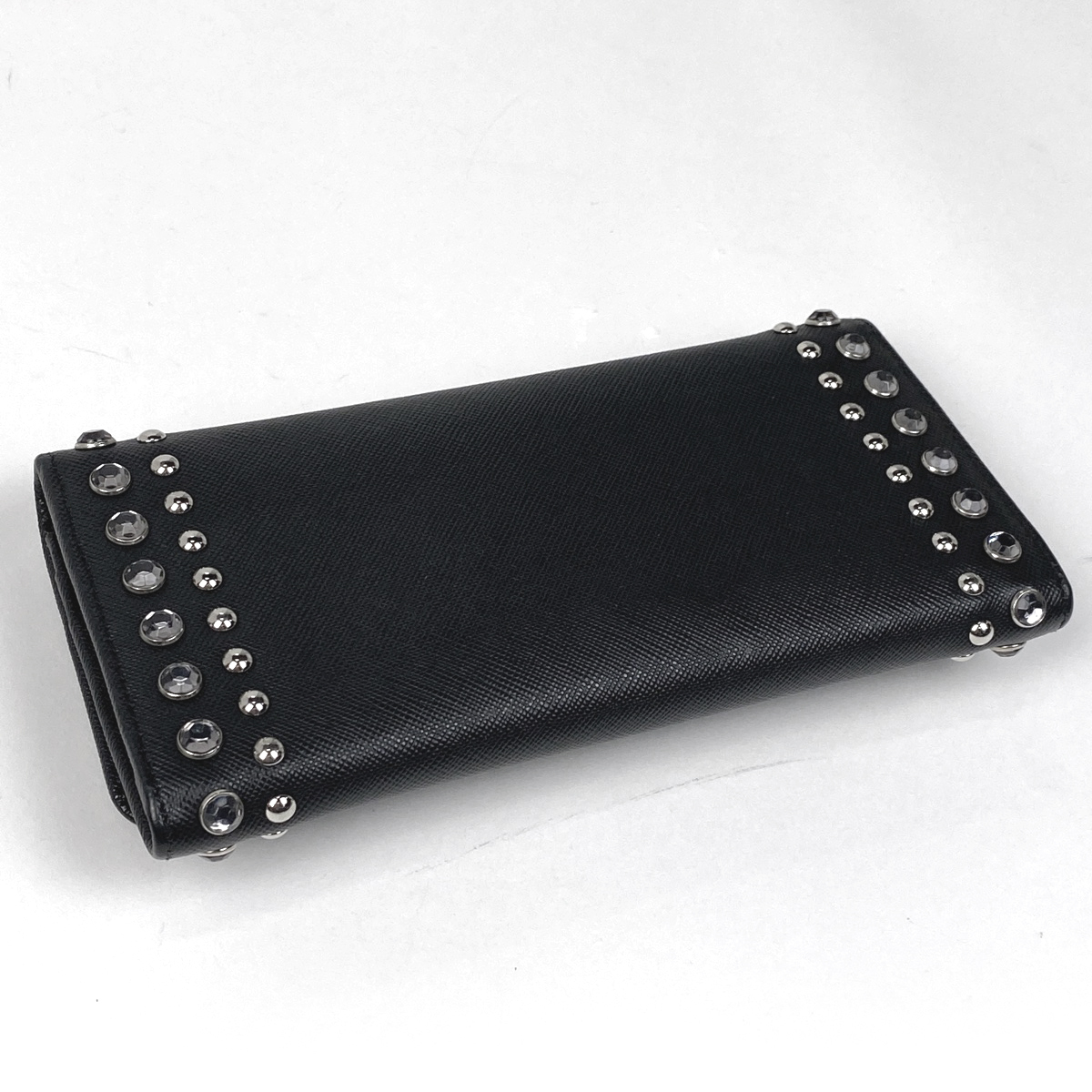 | プラダ PRADA ロゴ 二つ折り 長財布 ラインストーン スタッズ 長財布 サフィアーノレザー ネロ(ブラック) 1MH132 レディース 【中古】 |