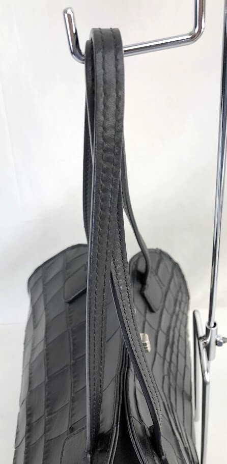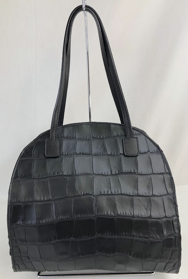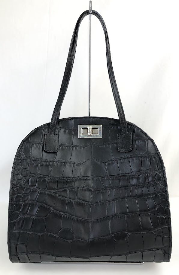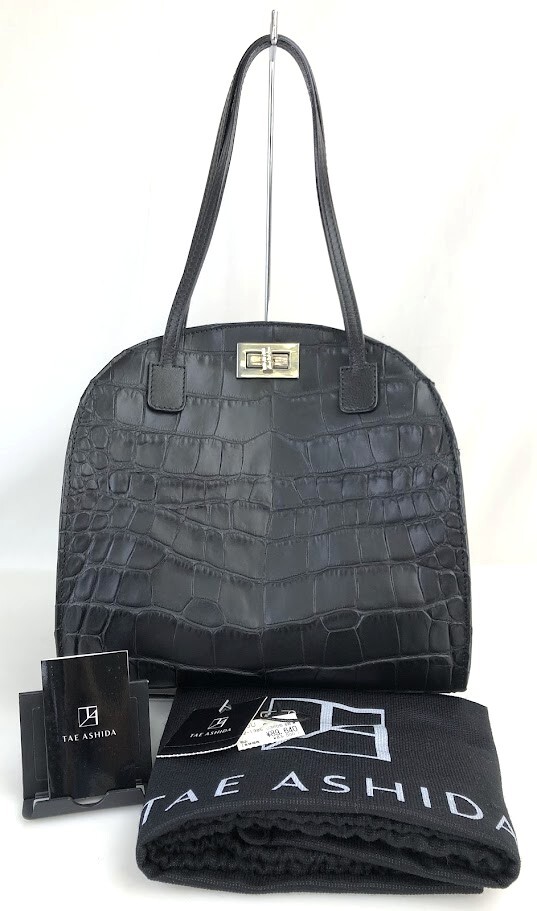 【1円出品】K3488 TAE ASHIDA タエアシダ 牛革 レザー 型押し ハンドバッグ ショルダーバッグ 黒 ブラック シルバー金具 レディース | |||