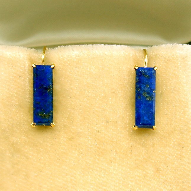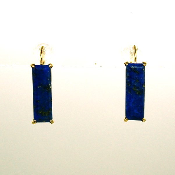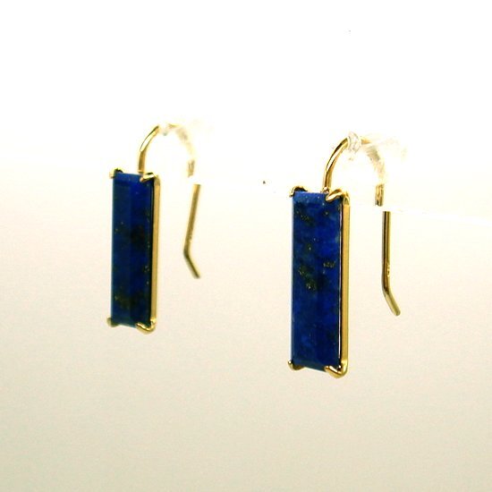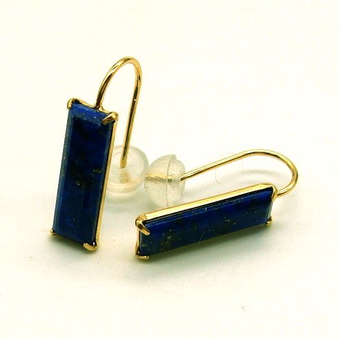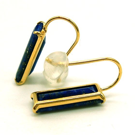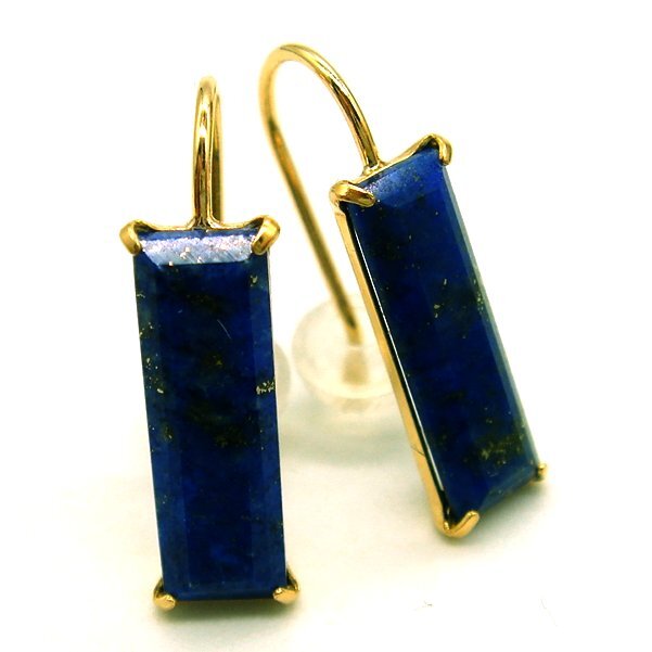 極端に細長いバゲットカットのラピスラズリが、シャープでスタイリッシュ、そしてスポーティなピアスです。