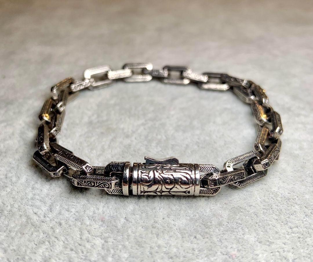 ヴィンテージ感がカッコよくチェーン全体に柄が掘られており、圧倒的な存在感で個性を出せます。