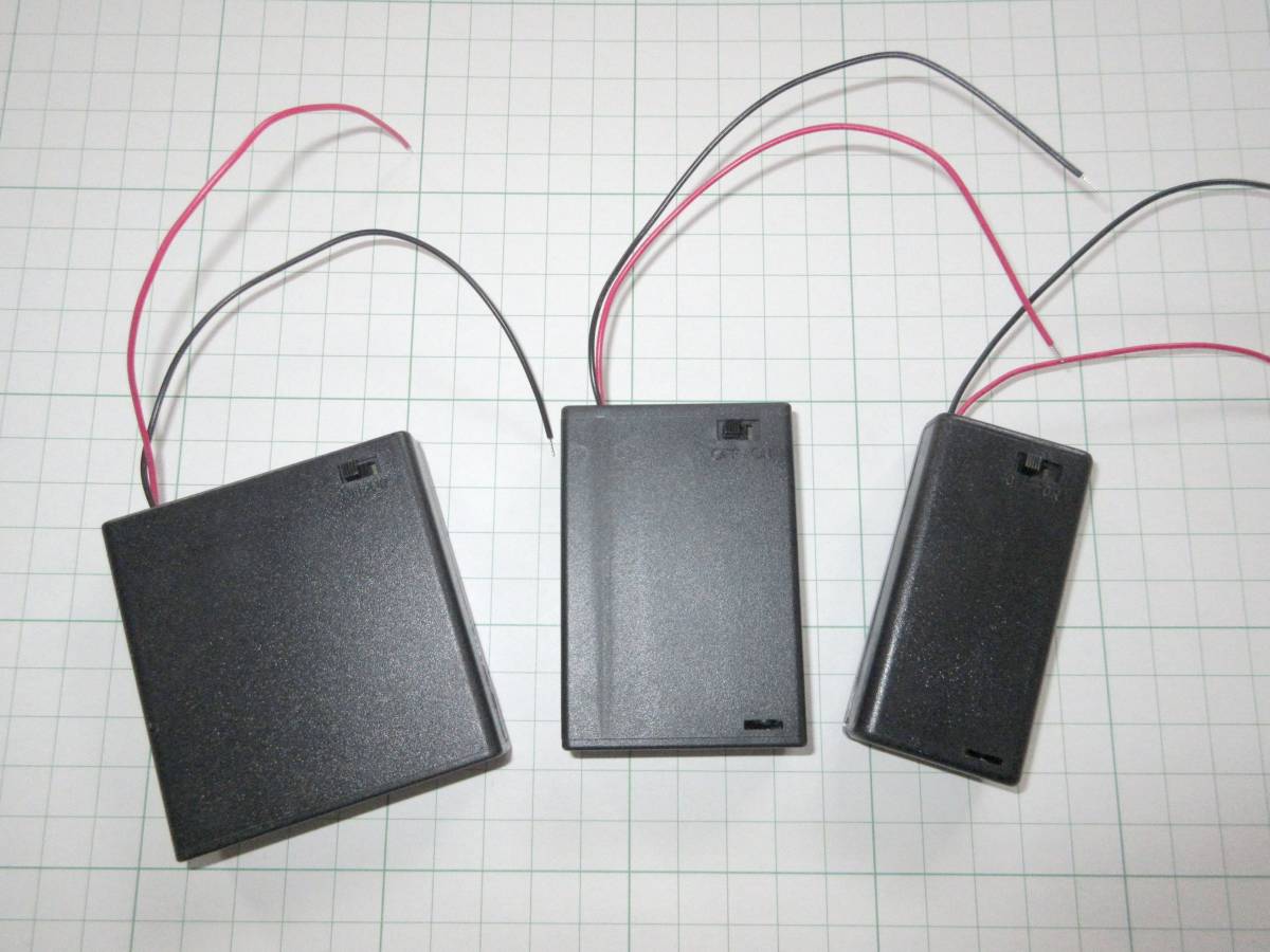 | 即決価格は 単三x3本型 1個の価格です。 【三3 電池ボックス】 200円/個 ・メーカ-: TAIWAN COMFORTABLE社製 ・型 式: SBH-331-AS ・収納電池: 単三型電池 3本 (直列接続) ・サ イ ズ : 約48x68x20mm 約25g ・そ の 他 : 蓋付 スイッチ付 リード線タイプ (蓋を止めるビスは付属しません) ------------------------- 類似品 ------------------------------ ◆この他に 写真3 左より 三4 単三×4本用(蓋付・スイッチ付) 200円/個 三3 単三×3本用(蓋付・スイッチ付) 200円/個 (出品物) 三2 単三×2本用(蓋付・スイッチ付) 180円/個 ◆この他に 四4 単四×4本用(蓋付・スイッチ付) 200円/個 四3 単四×3本用(蓋付・スイッチ付) 200円/個 四2 単四×2本用(蓋付・スイッチ付) 180円/個 ◆この他に、蓋無しも出品しております。 ◆ほかにも多数、出品しております、下記より分類毎に検索出来ます。 ------------------------- 検索キー ------- rev. 2024/09/10 ------------------- カーボン抵抗 セメント抵抗 可変抵抗 電解コンデンサー 積層セラミック インダクター センサー 集積回路・TR ダイオード 発光ダイオード 拡散キャップ 電池ボックス プリント基板 端子台 コネクター スイッチ 測定器 電源関係 放熱器・FAN 電線 保護部品 USB関係 LiPo関係 照明関係 その他 熱収縮チューブ ⇒25cm 物 ⇒1m 物 ⇒割安 RC関係 中古品 送料無料品 休業日 | |