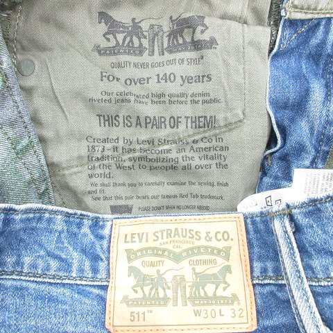 リーバイス Levi's 511 デニム ジーンズ ロング丈 140周年 ロゴ 綿 インディゴ ブルー 30 メンズ