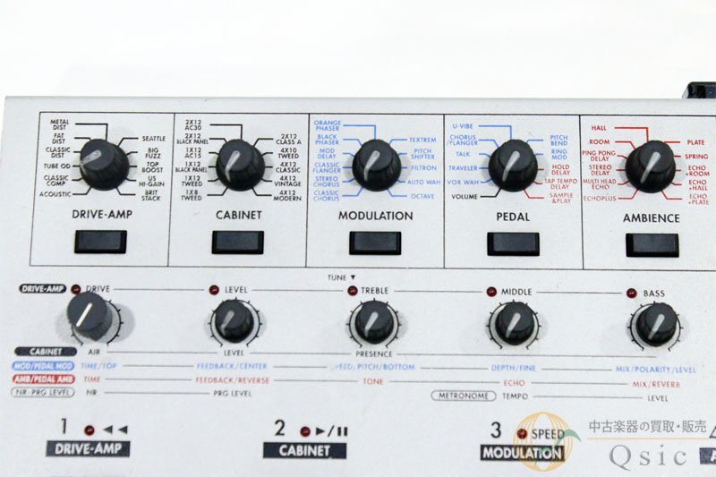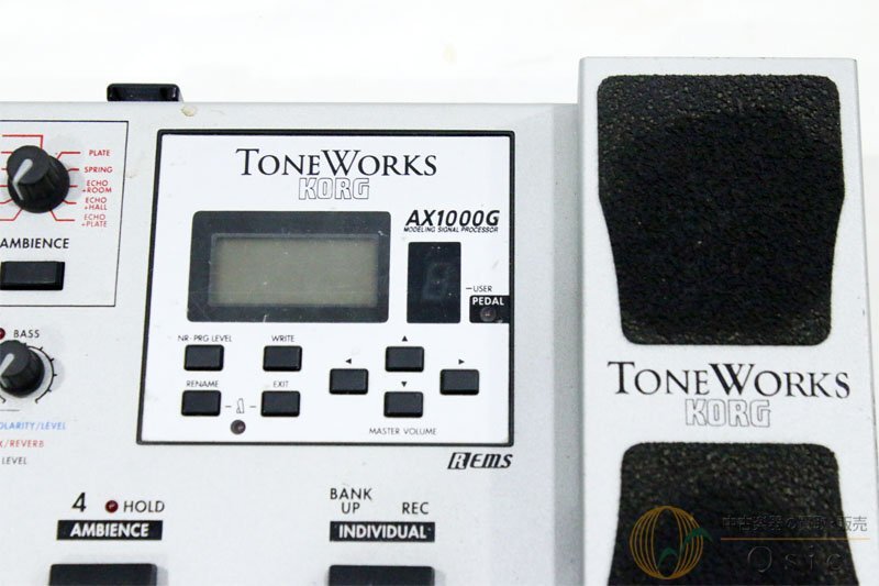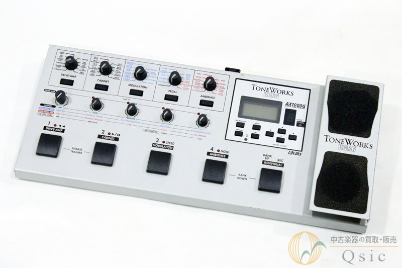 商品説明 | デジタル系の楽器で定評のあるブランド、KORG によるマルチエフェクター、AX1000Gが入荷いたしました! 他のマルチエフェクターよりコンパクトなサイズながら、56種類ものアンプモデルやエフェクトを内蔵した当機。最大8種類のエフェクトを同時使用することができ、加えて合計80ものプリセット保存が可能です。 エフェクトはもちろん、アンプモデルのラインナップやサウンドクオリティも優秀で、スピーカーキャビネット・モデルも選択できることから実にリアルで迫力あるサウンドが得られます。また、サウンドメイクは基本ツマミのみで行えるので、マルチに不慣れな方でも簡単に扱える操作性も魅力です。 確かなサウンドクオリティと機能を持ちながら、コンパクトで軽量なためどこにでも持ち運べる使い勝手の良い1台です。ぜひこの機会にお求めください! 【状態】 ペダル部分の劣化や使用に伴う筐体角部分の塗装剥がれなどがあり、使用感が目立つ状態です。 動作は問題ございませんので、外観は気にされない方には大変お買い得なお品となっております。 |