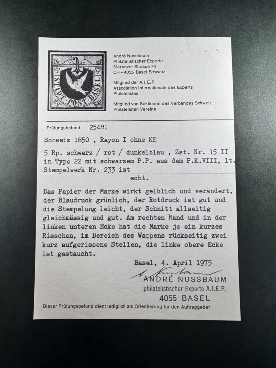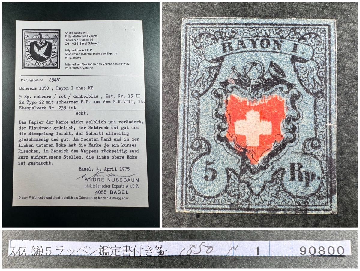 購入90800円 スイス 5ラッペン 5RP 切手 鑑定書 1850年 発行 使用済 紋章 ヨーロッパ 海外 世界