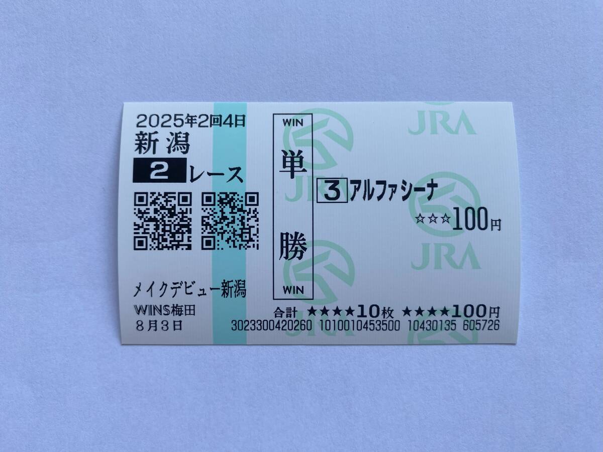 アルファシーナ メイクデビュー新潟 場外単勝馬券