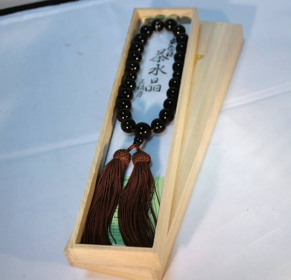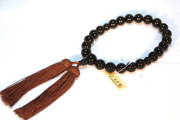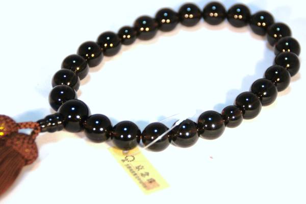 【素材】 親珠:丸珠(14ミリ)、主珠:丸珠(12ミリ)、天珠:丸珠(10ミリ)   【房(ふさ)】房デザイン→通常の「頭付房」となります。たいへん丈夫な絹の房です。