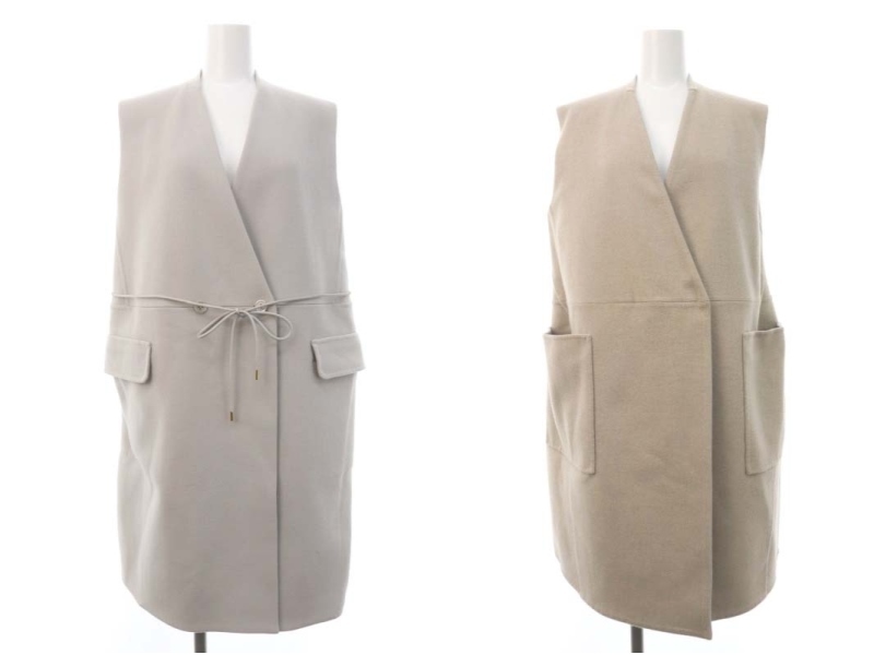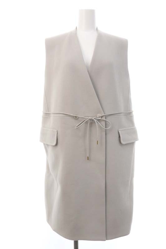 ドゥロワー Drawer ウールメルトンリバーシブルジレ ベスト ロング ベルト紐付き 36 グレー ベージュ /MI ■OS レディース