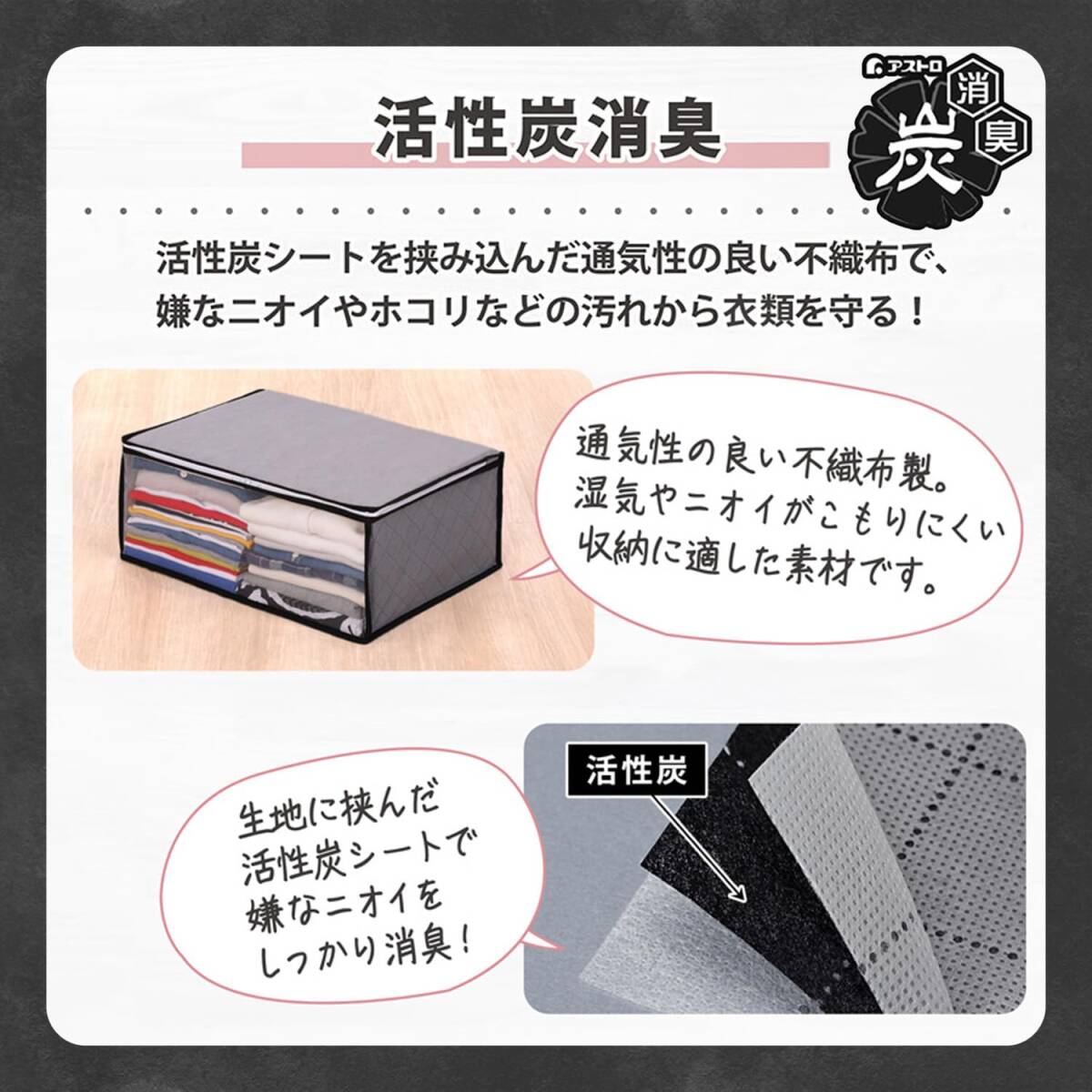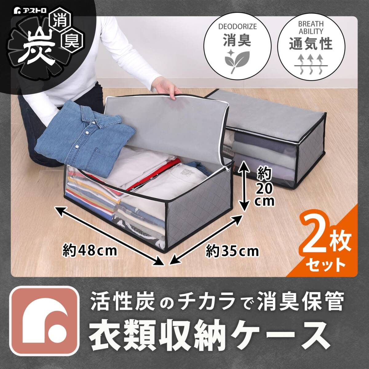 アストロ 活性炭消臭 衣類収納ケース 2枚組 活性炭のチカラで消臭保管 通気性の良い不織布がホコリなどの汚れをガード 3層構造の厚手でしっ