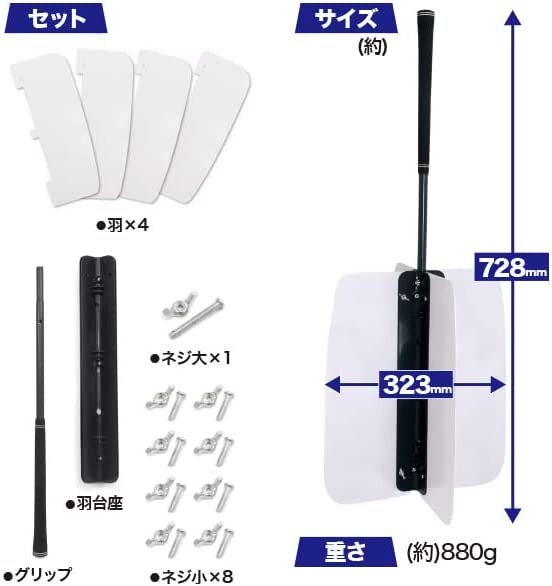 ・セット内容:グリップ×1、羽の骨組み×1、羽×1、33mmネジ×1組、18mmネジ×8組