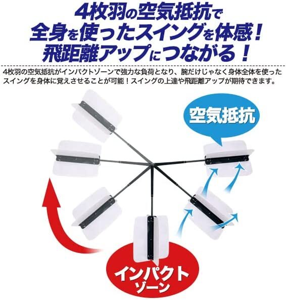 4枚の羽が空気抵抗により、インパクトゾーンで強力な負荷となり、腕だけじゃなく身体全体を使った