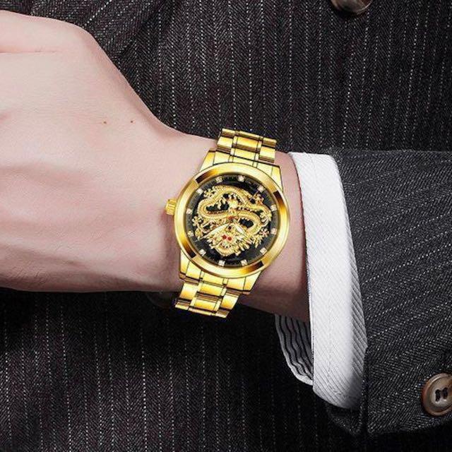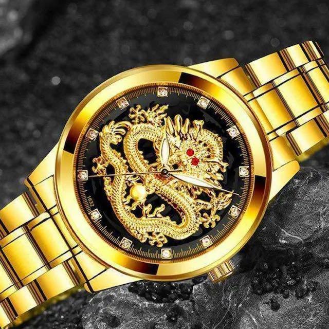 ドラゴンスタイル腕時計 ラグジュアリー腕時計 メンズ ゴールド×ブラック