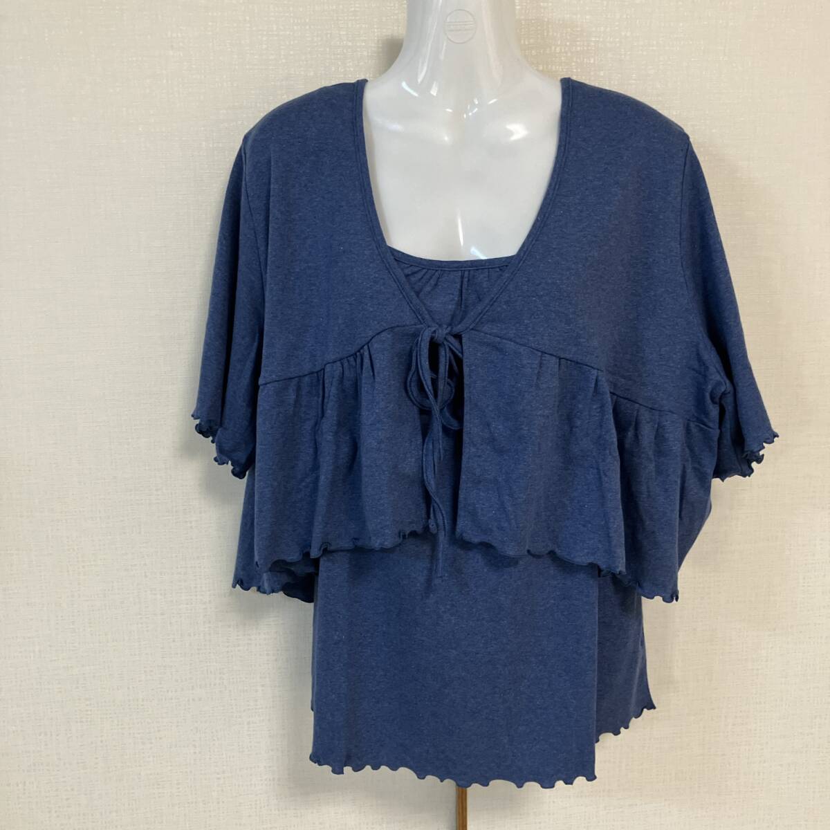 大きいサイズ★4L~5L★半袖アンサンブル★綿100%★ブルー★新品★ゆうパケット発送