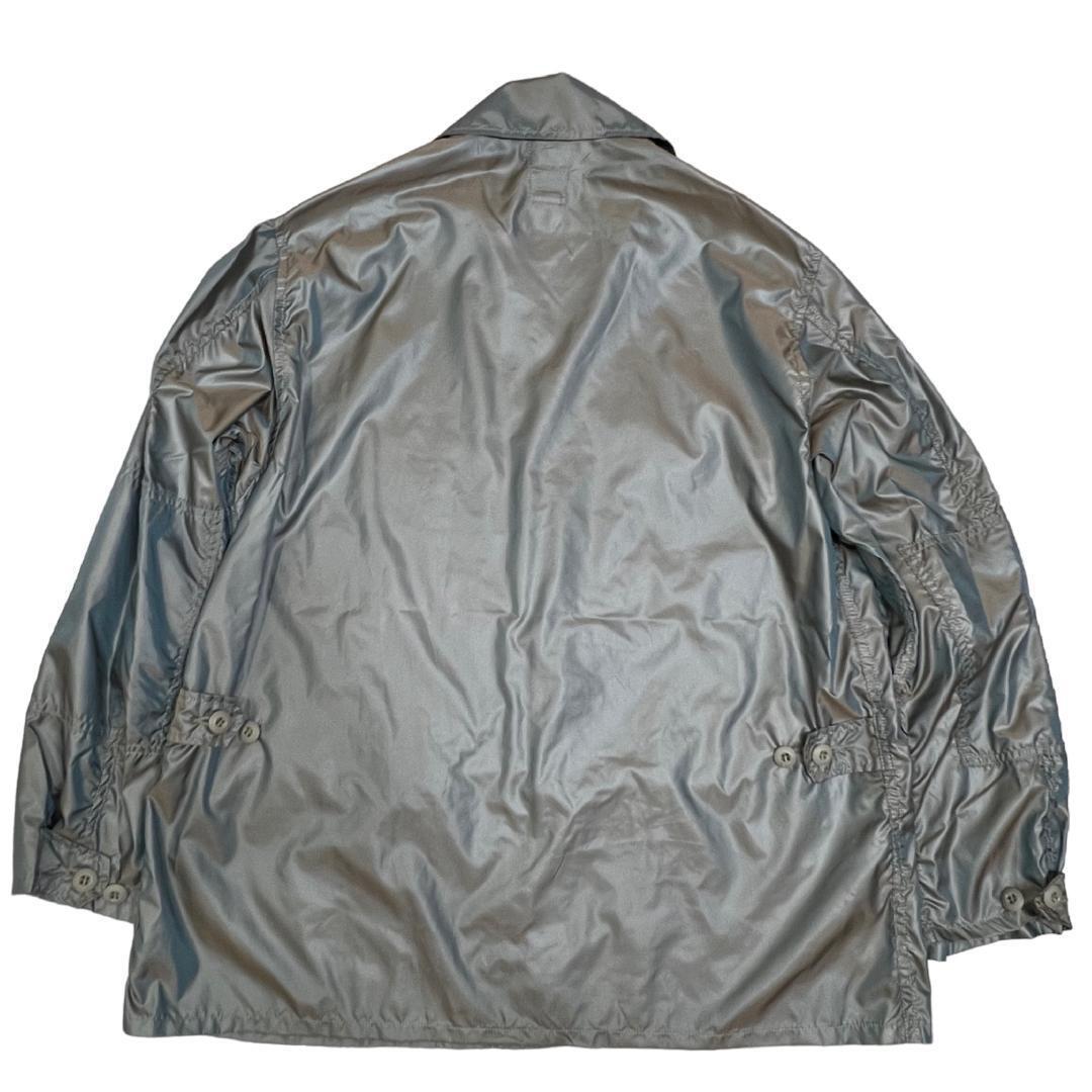 ・古いトレンチコートに見られる玉虫カラーのポリエステルタフタ生地を採用。ややオーバーサイズにリサイズし、ソフトな素材をいかした袖のロールアップが自然にキマるよう配慮。