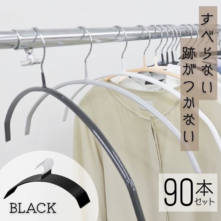 滑り止め加工が施されたハンガーです! 滑りやすい素材やデリケートな衣類でもしっかりとキャッチします。 型崩れしにくい三日月型デザインで洋服の形状に適応します。 跡がつきにくく、変形やシワを最小限に抑え、綺麗に保ちます♪ スリムデザインのため、木製やプレスチックハンガーより空間を節約できます! 軽量でありながら丈夫なスチール素材を使用し、重めのコートを掛けても変形しにくいです。 【商品仕様】 カラー:ブラック サイズ:(約)42×20×1cm 重量:(約)70g 材質:PVC / スチール 他 【商品内容】 ハンガー ×90本 |