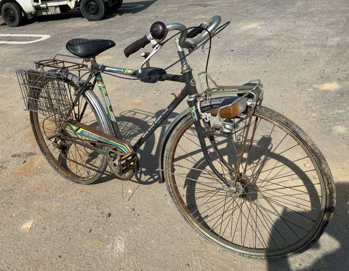 写真の様な自転車です。倉庫から出た物を水洗いしただけです。とても古い物ですが、倉庫の中でしまわれていました。タイヤはダメですが、他は大丈夫そうです。ライトはタイヤがダメなので、動作未確認です。26インチで出品ですが、タイヤサイズが読めなかったので不明です。写真で判断の上のレストアベースとご理解して頂きノークレームでお願いします。愛知県安城市引き取り限定でお願いします。