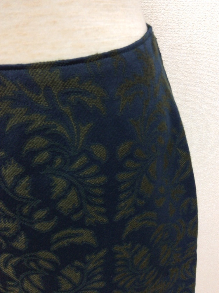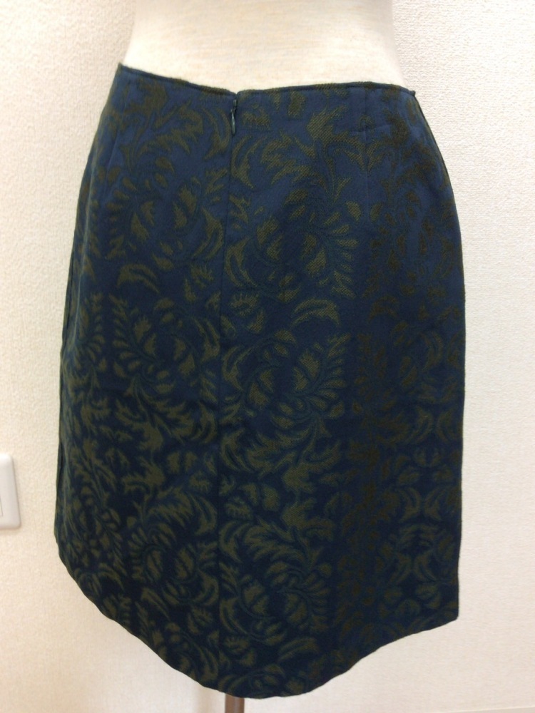 管理番号:99^130269 ニューヨーカー 濃いブルーに抹茶グリーン柄のスカート 表示サイズ:9 実寸(参考)