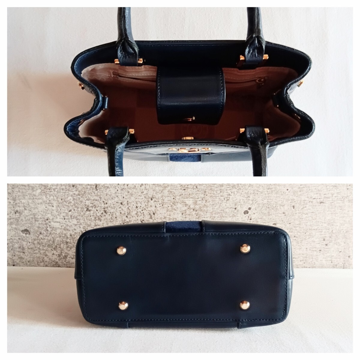 【色】 ネイビー 紺 ブルー 青 /裏地 ベージュ /金具 ゴールド