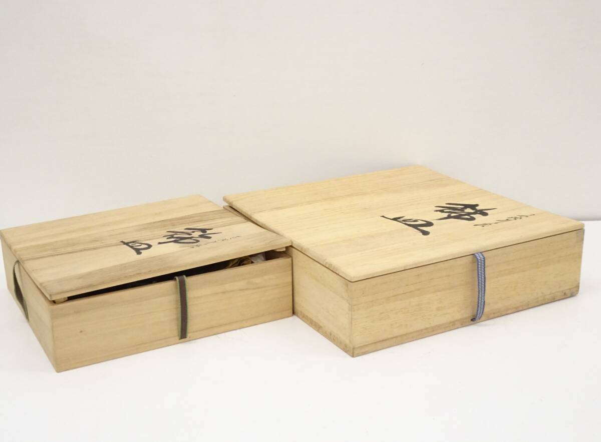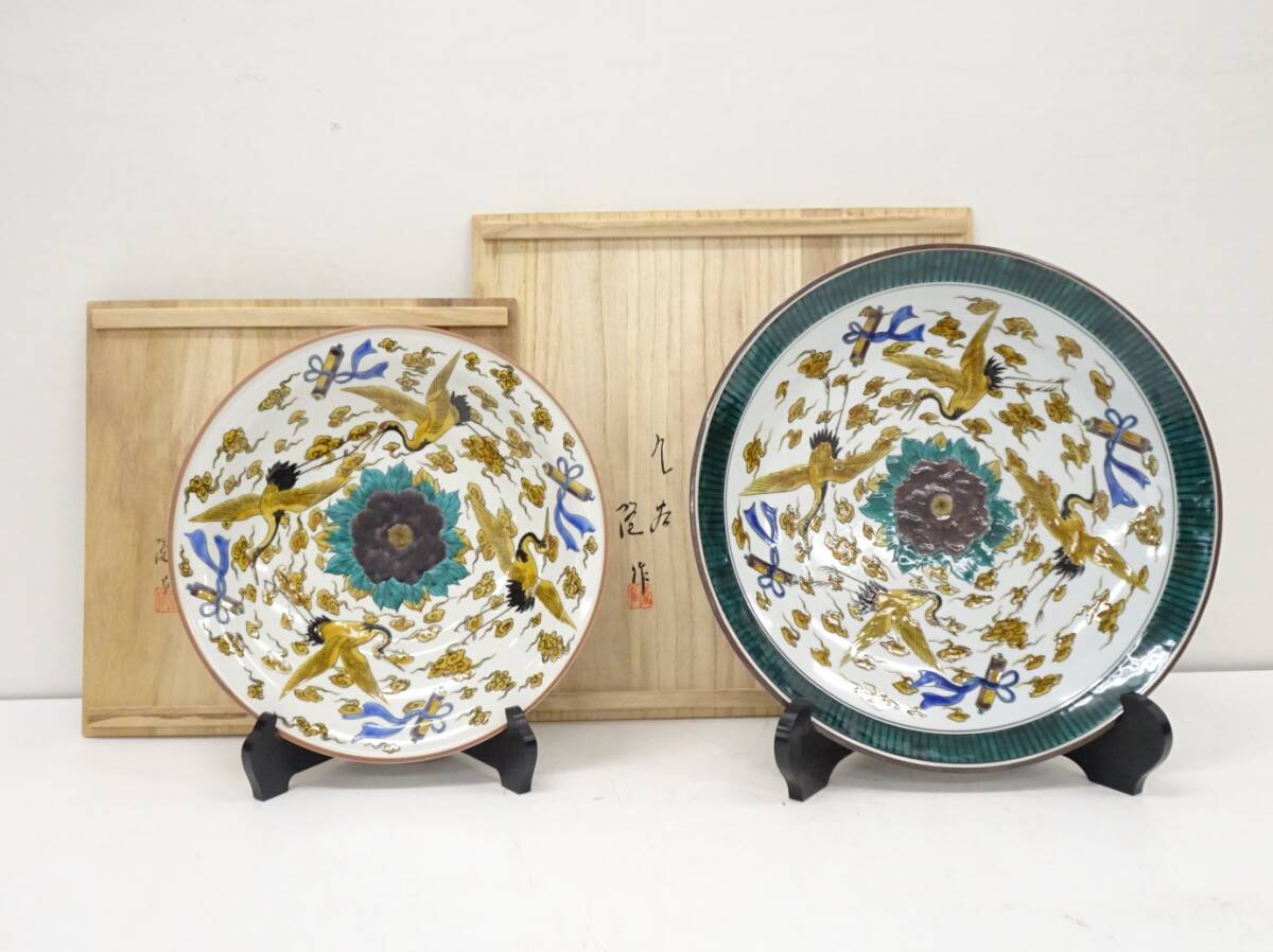 ☆名工☆九谷焼☆北村隆 色絵大飾皿2点セット☆飾皿 共箱 共布 陶歴