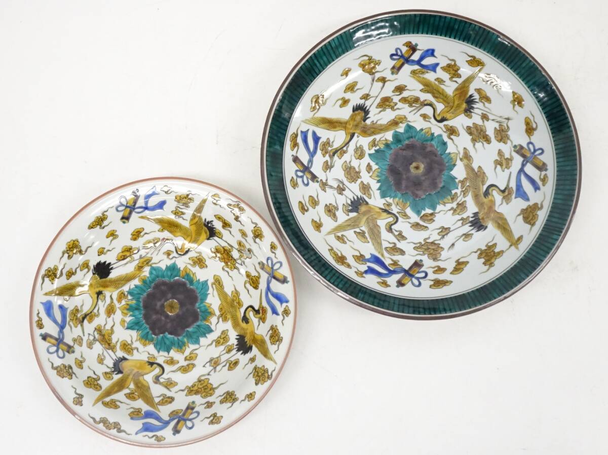 九谷焼の名工北村隆作の色絵大皿2点です。