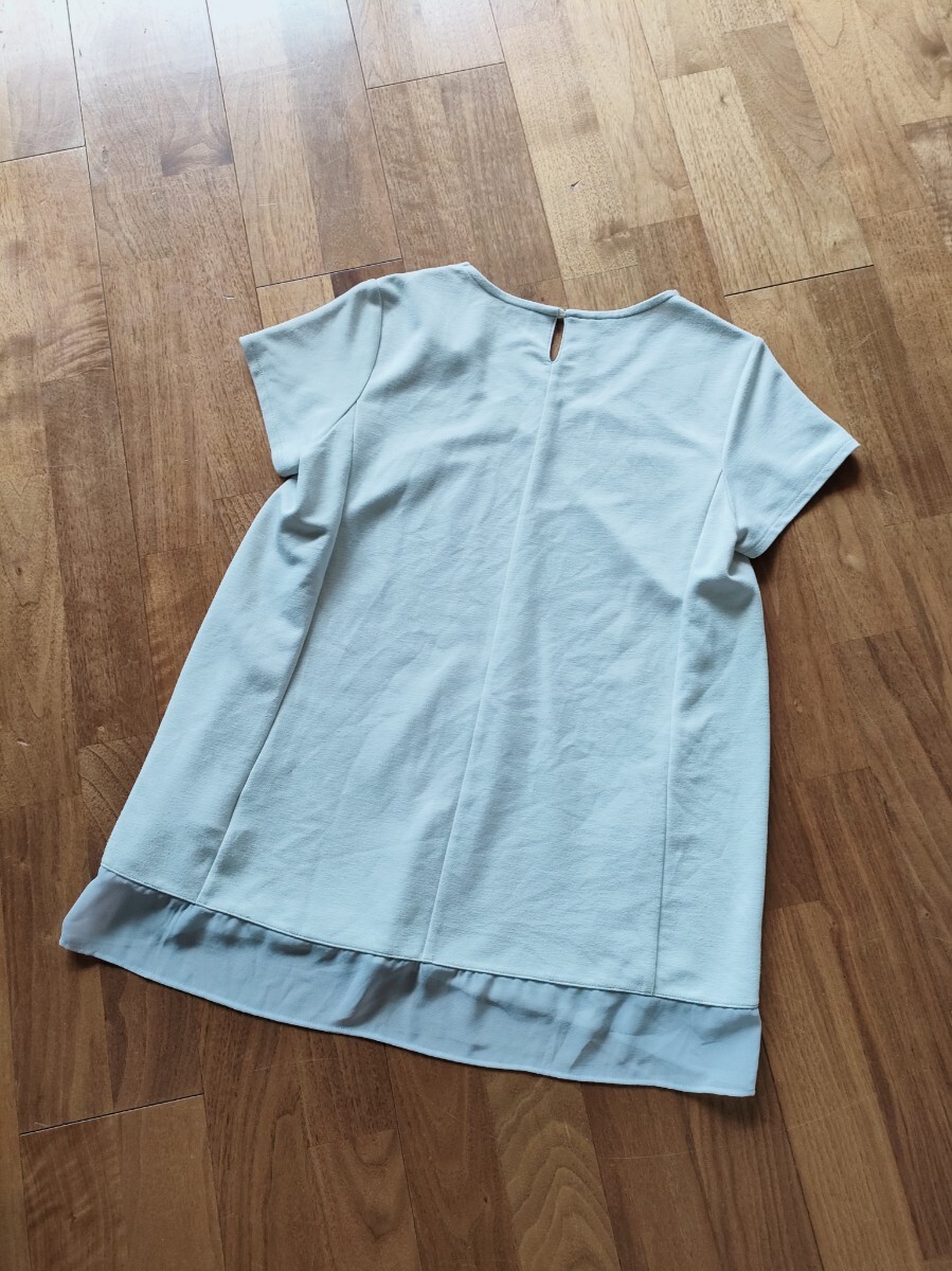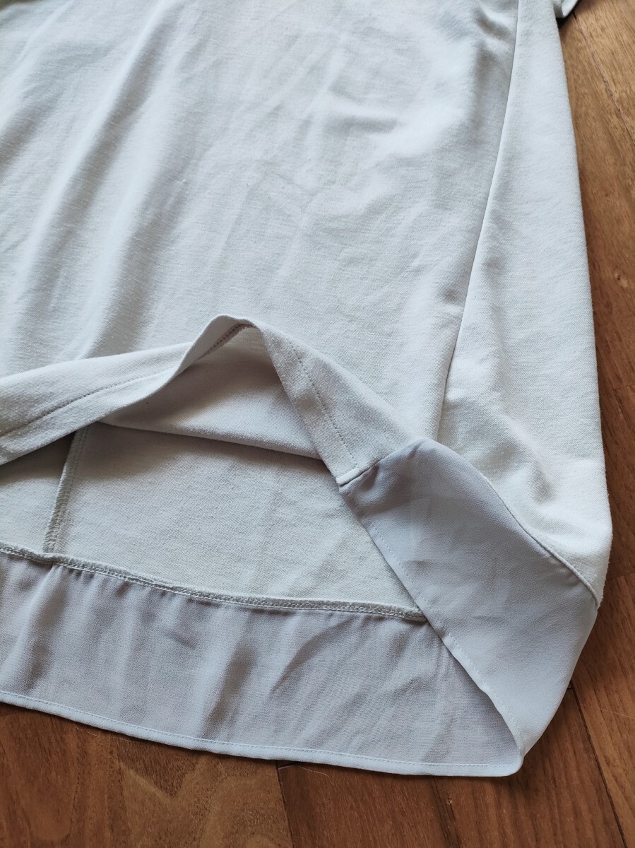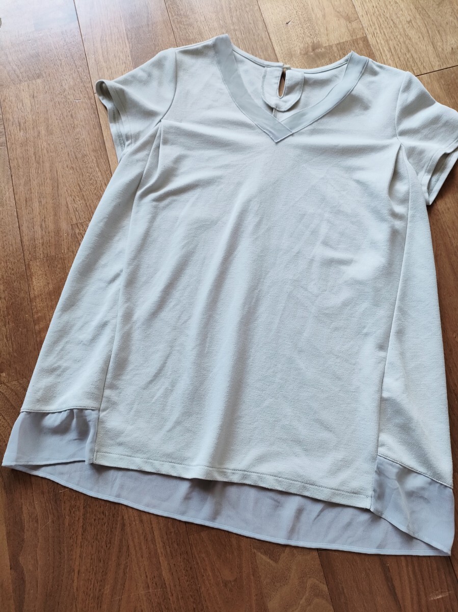 【デザイン】女性用 首元、裾シフォン素材 半袖 夏素材 チュニック丈