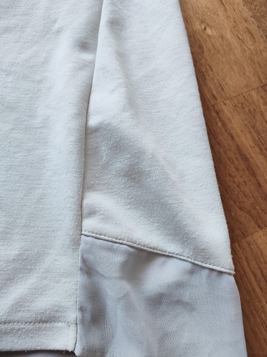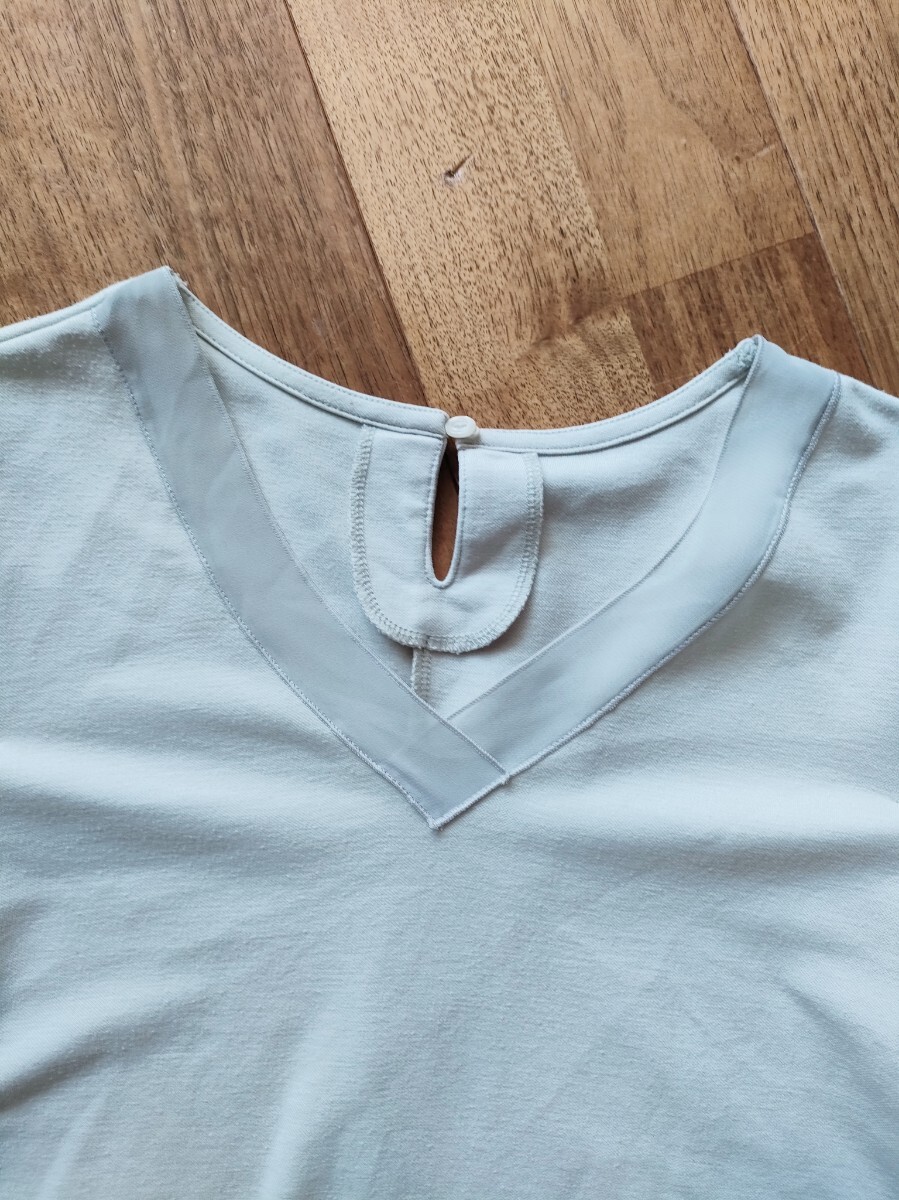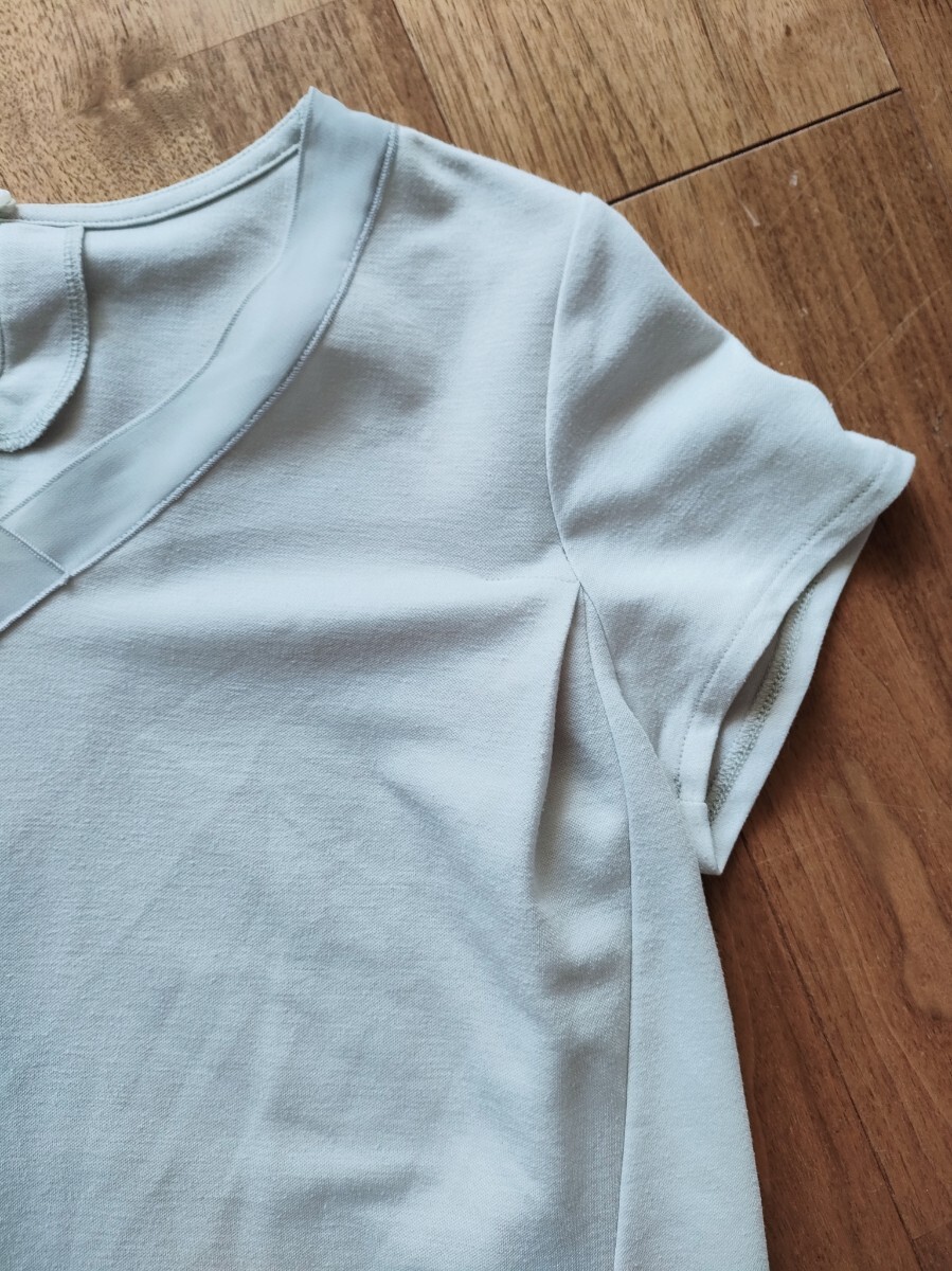 【デザイン】女性用 首元、裾シフォン素材 半袖 夏素材 チュニック丈