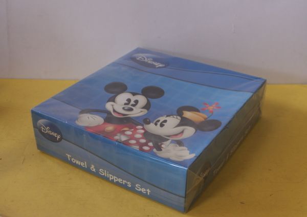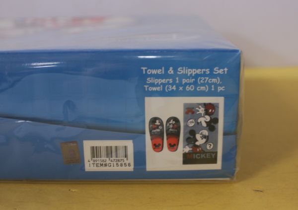 未使用品 ディズニー ミッキーのタオルとスリッパのセット 27㎝ タオルサイズ:約34×60㎝/26N7.17-41