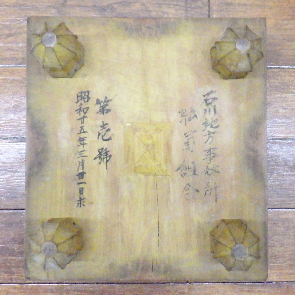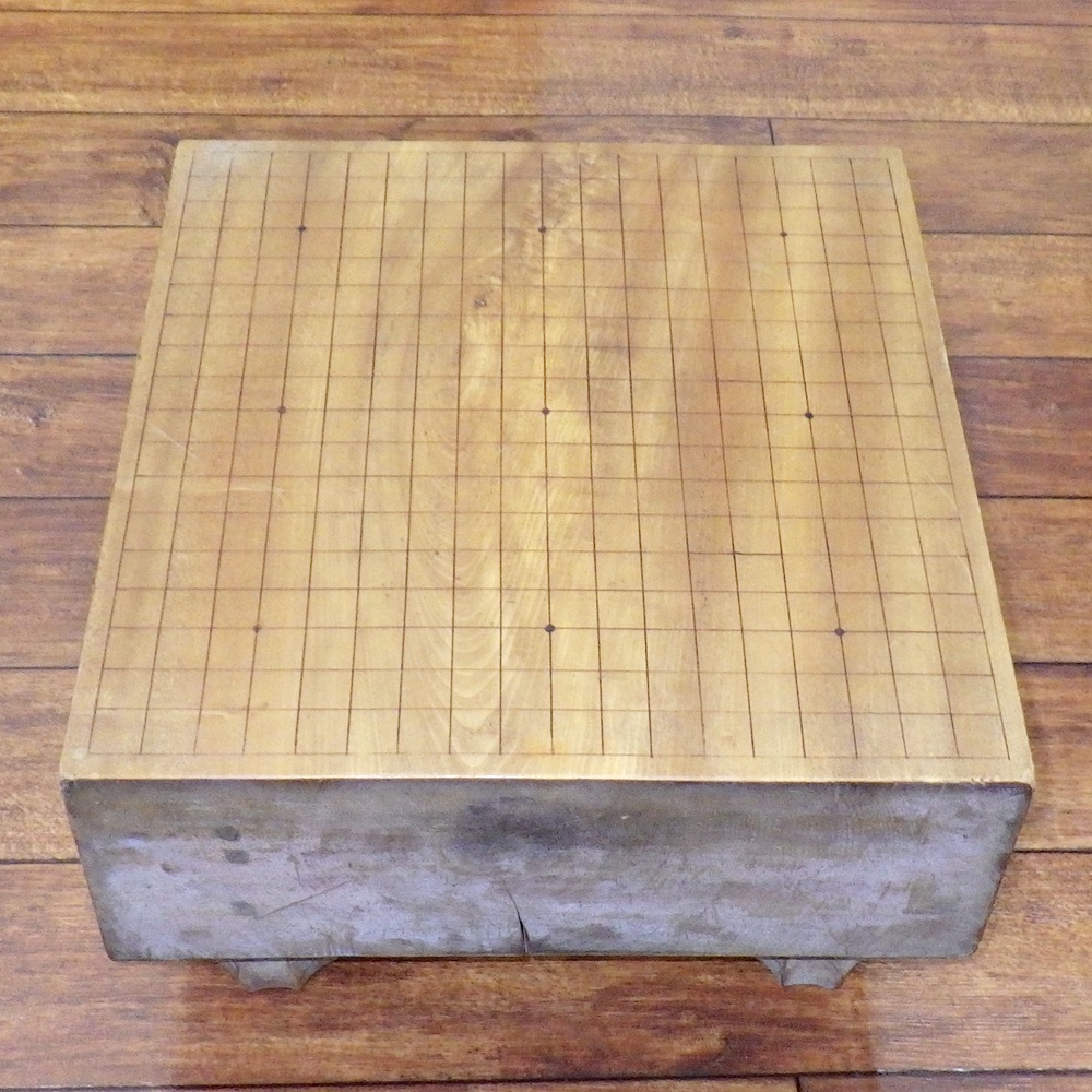 B25-1403 碁盤 脚付き ヘソ付き 囲碁道具 木製 厚さ14.2cm 44.5cm×41.2cm 高さ26cm 重さ約13.6kg 中古 裏面書き込みあり 店頭受渡し可