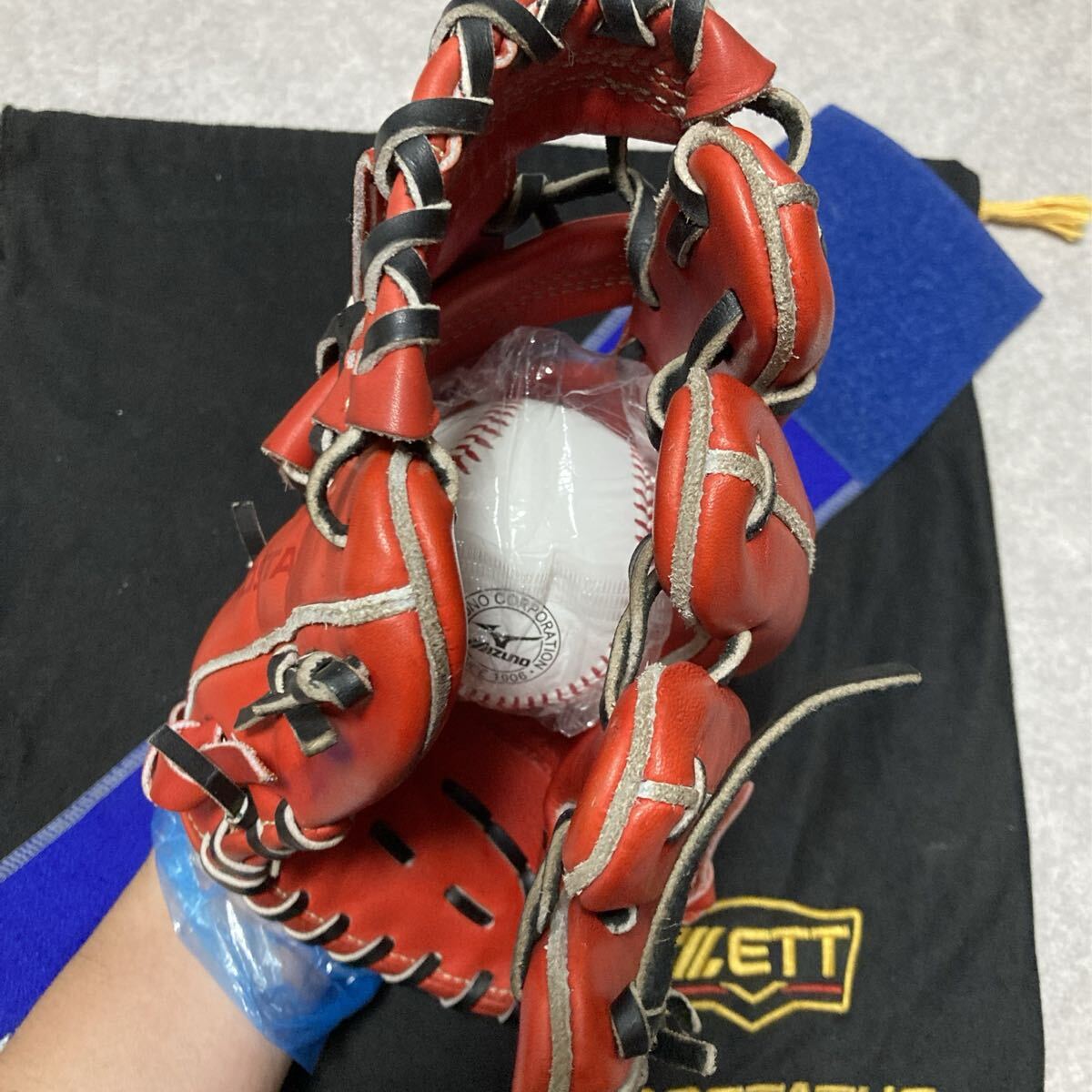 写真の Mizuno ミズノ 硬球 バンドとグローブ袋(中古品)付属します。