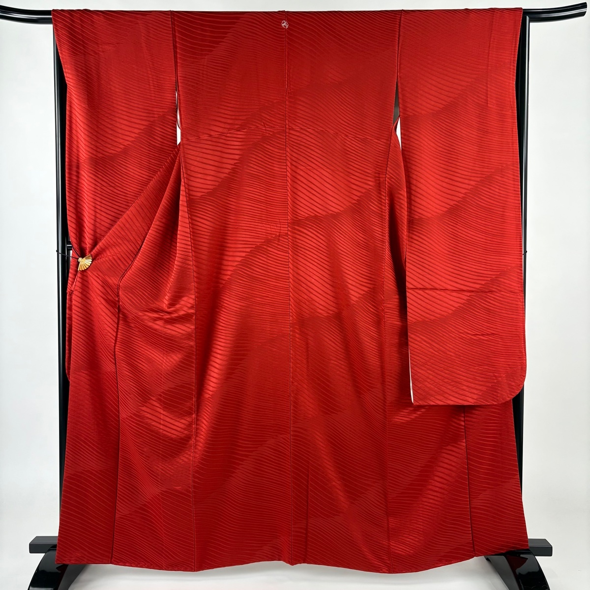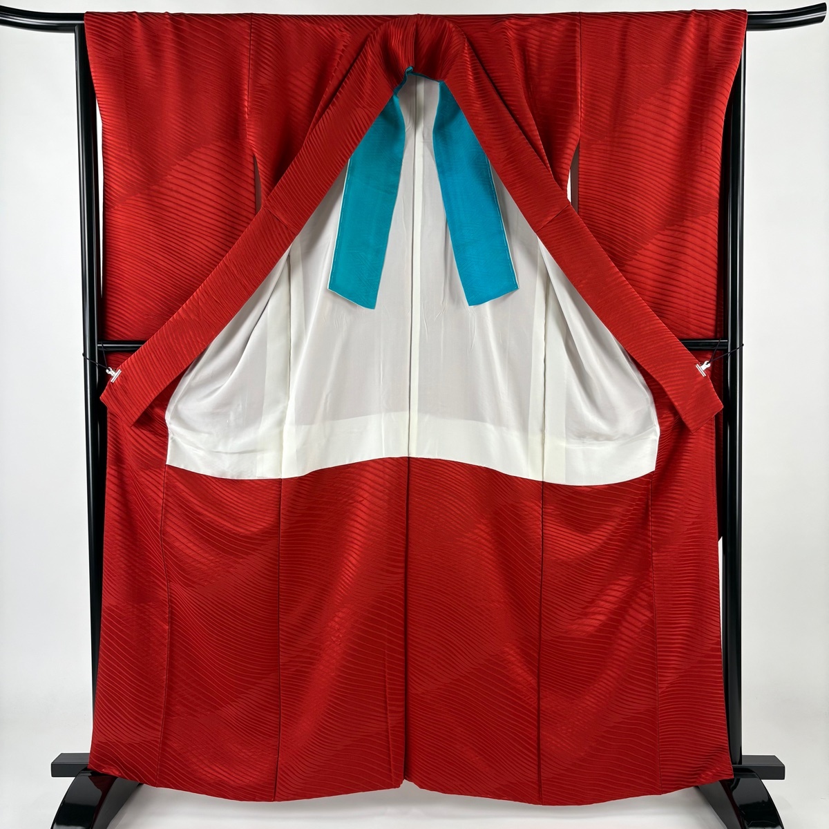 振袖 名品 地紋 赤 袷 身丈163 裄丈66 M 正絹 【中古】 |