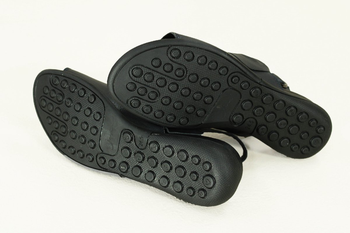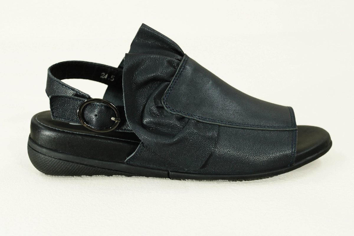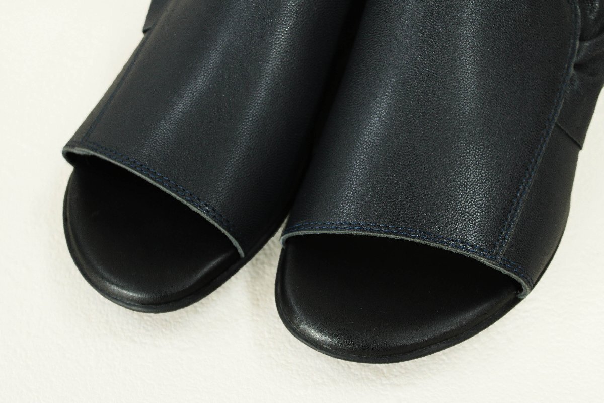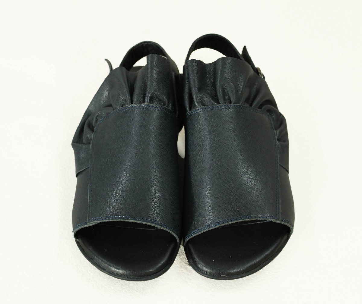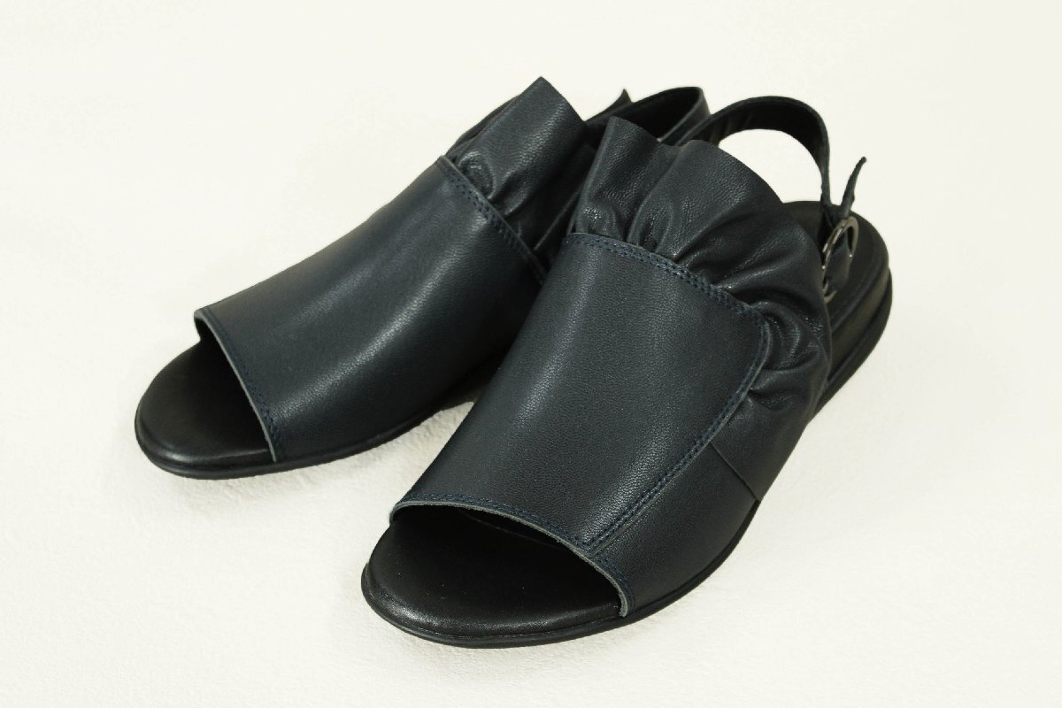 ☆訳有/美品☆慈雨センソユニコ/フリル使いレザー調サンダル:24.5/濃紺系yx287