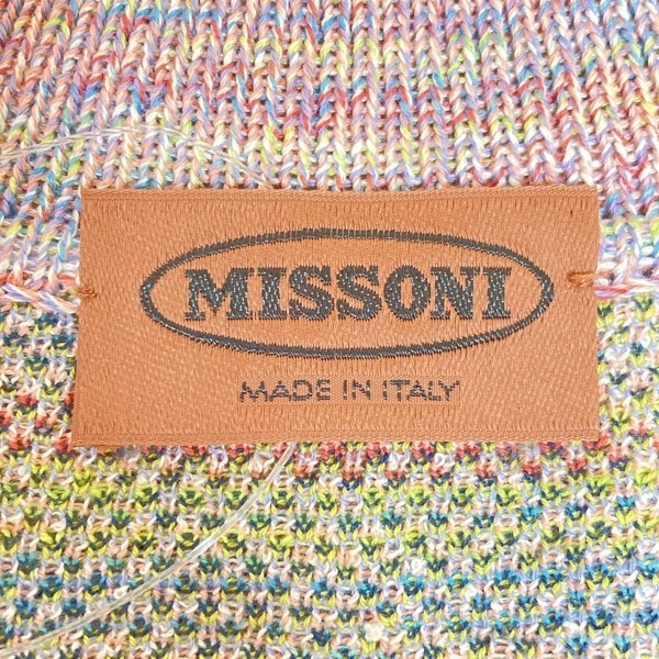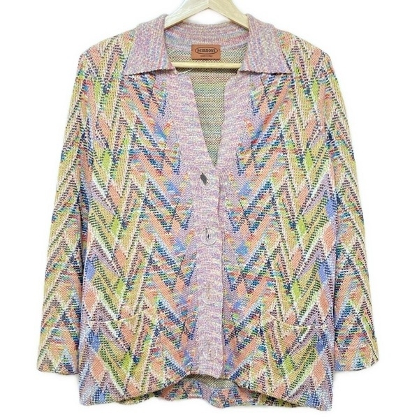 ミッソーニ MISSONI カーディガン サイズ46 L - ライトピンク×パープル×マルチ レディース 長袖/ニット/肩パッド 美品 トップス