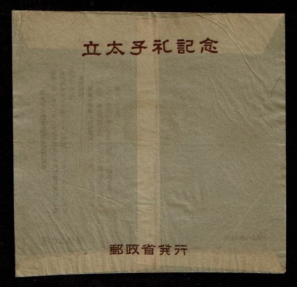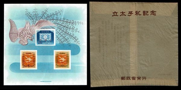 1952年 立太子礼記念 小型シート(タトウ付き) みほん字入り