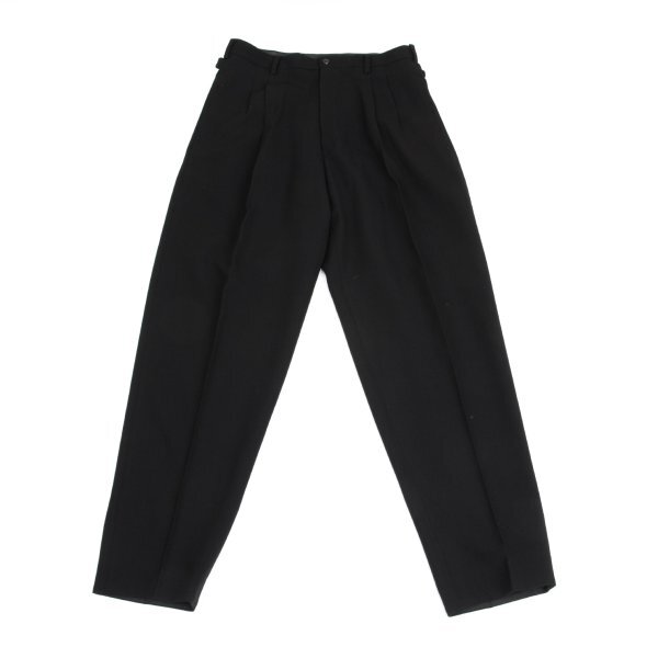 | ヨウジヤマモト プールオムYohji Yamamoto POUR HOMME ウールバックベルトタックテーパードパンツ 黒M |