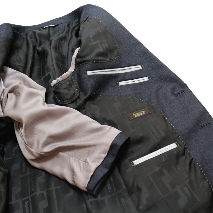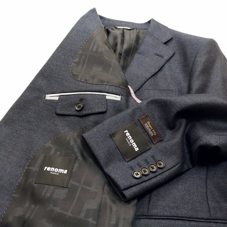 AMFステッチ、総裏仕立、本台場・汗止め・袖口4つボタン、袖口裏額縁仕上 renoma刻印本水牛ボタン・ピンポンステッチ・ボタンX止め、チョーシック 生産国:中国製*仕上げのプレスは、国内で施しております。 |