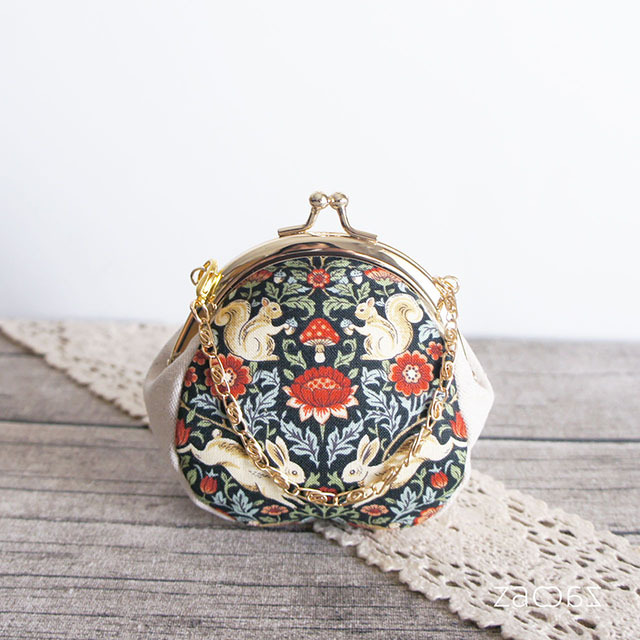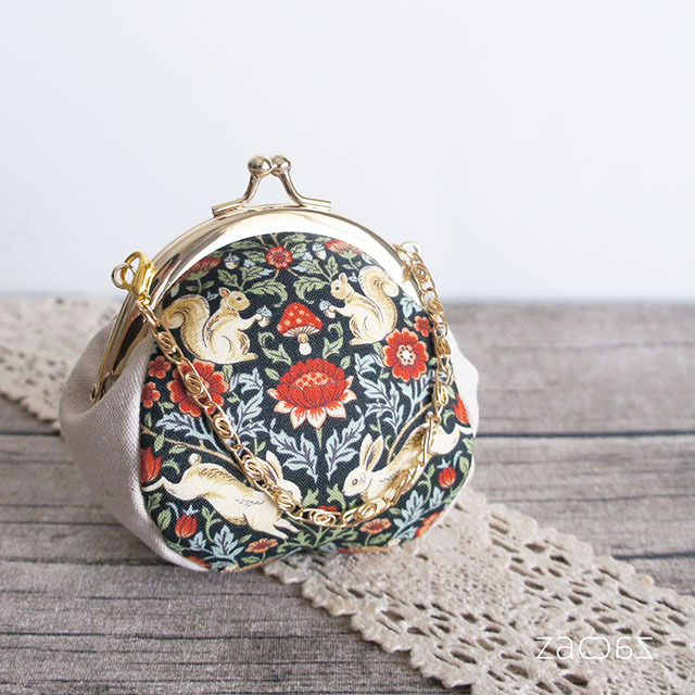 バッグチェーンがま口*兎とリス*ハンドメイド