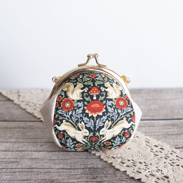 ウサギとリスのシンメトリー生地で作った手のひらサイズの可愛いがま口ポーチです。