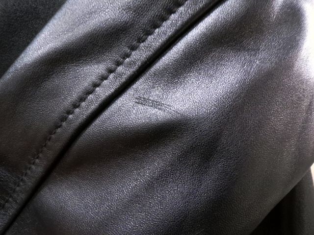 | 商品説明 | しっとりとしたラグジュアリーな手触りが特徴の、ラムスキンを使用。 柔らかくもしなやかさがあり高級感が漂います。 ちょいシックな大人の着こなしにも、カジュアルダウンにも難なく対応します。 中古品ですので使用感、経年使用による薄いキズや擦れ・色ムラや薄汚れ、左右袖先に擦れ、左袖上部に擦りキズ(写真7枚目)、裏地左右脇に縫い目の広がり(写真8枚目)、裏地左右背中中央脇に縫い目の広がり(写真9枚目)はありますが、その他特別に目立った汚れ、破れなどはなく、全体的にはまだまだ着て頂ける状態であると思います。 念のため神経質な方、状態にシビアな方、細かい事にこだわります方は入札を御遠慮下さい。 商品の状態についてはあくまで当方の主観となりますので、その点をご理解の上、入札をお願い致します。 カラー: 黒 素材: 羊革 表記サイズ M (色 、柄などについては商品写真をご確認下さい。) 肩幅 41cm 身幅 50cm 着丈 52cm 袖丈 56cm (素人採寸のため多少の誤差はご容赦下さい) |