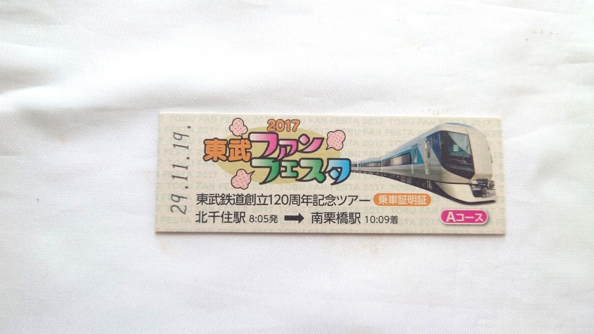 ★東武鉄道★2017東武ファンフェスタ 東武鉄道創立120周年記念ツアー乗車証明証★D型硬券