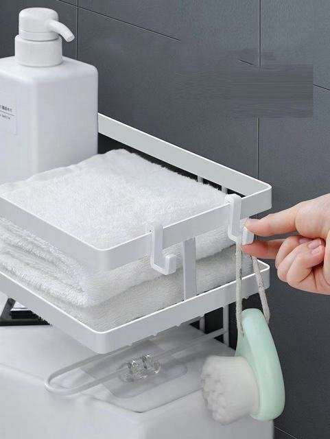 更に予備トイレペーパー,生理ナプキン置き場所としても最適です。フック付きますので,雑巾やブラシなども引掛けます。