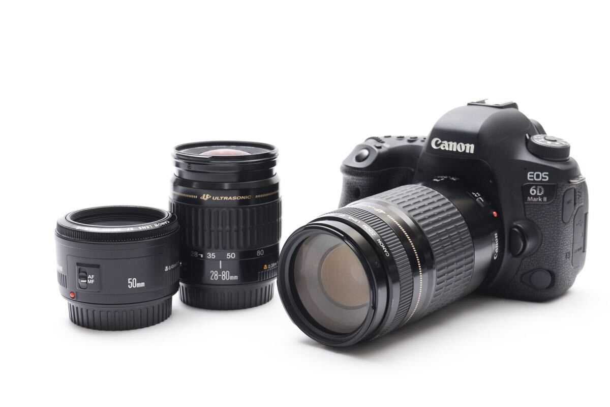 デジタル 一眼レフ カメラ 保証付き Canon EOS 6D Mark II 標準&望遠ダブルレンズセット/EF 50㎜1:1.8 II/EF 35-80㎜F4-5.6/EF 75-300㎜ F4-5.6☆121506000135000