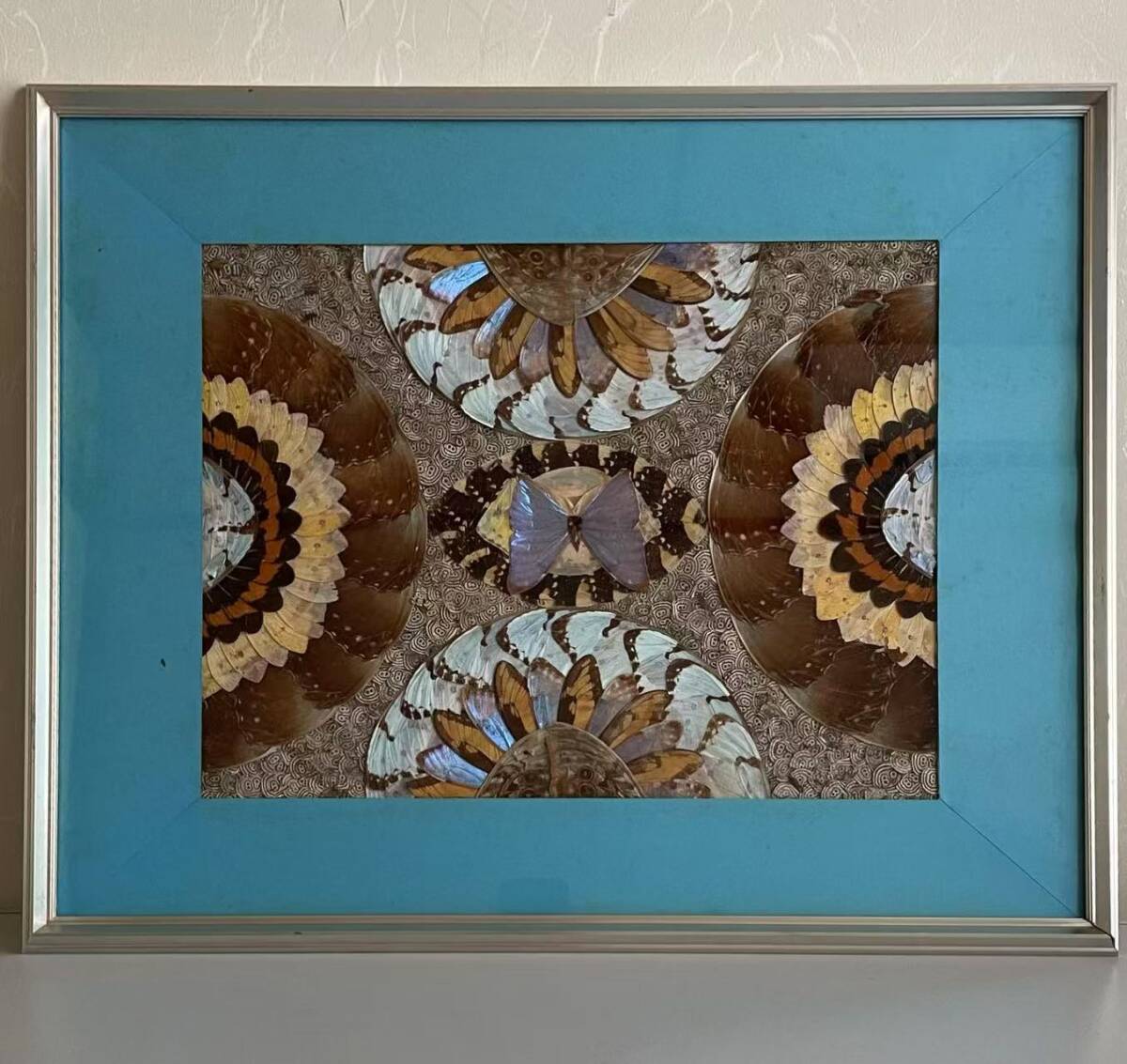 ブルーモルフォ蝶 飾り額 バタフライアート 蝶画 蝶額 標本?羽根細工 インテリア アート 壁掛け コレクション