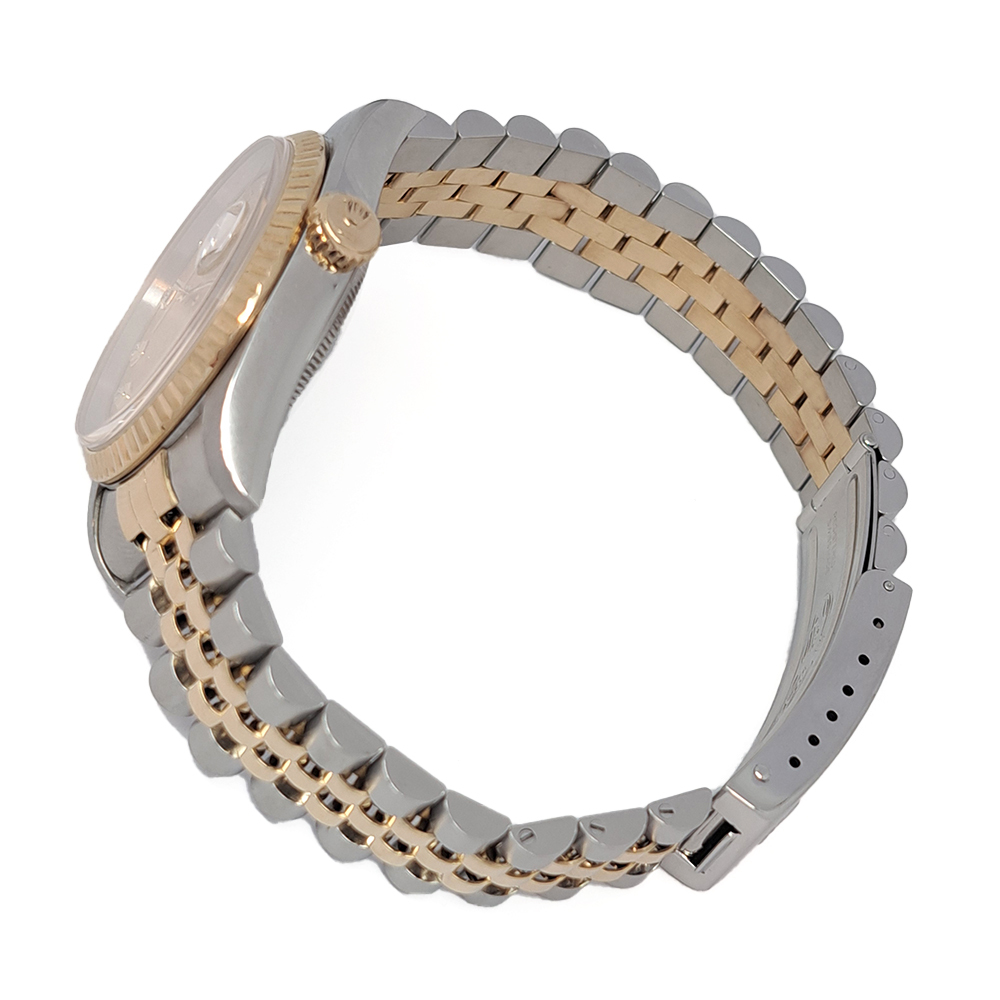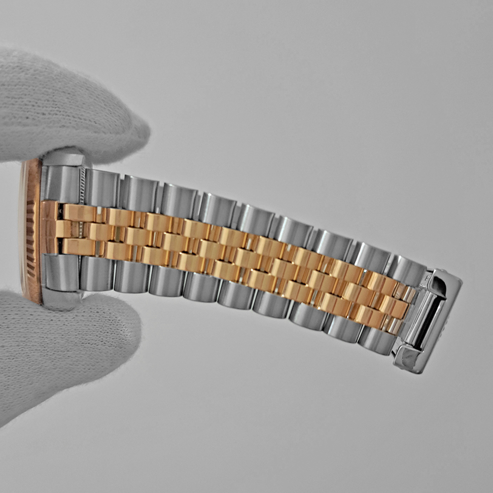 コメント | ロレックス デイトジャスト 16233G シャンパンゴールド彫コンピューター が入荷致しました。お洒落な彫コンピューターダイヤルに10Pの純正ダイヤモンドがセッティングされており、イエローゴールドとステンレススチールのコンビモデルのゴージャスな逸品です。ギャランティに香港にて購入した記載があります。こちらの商品は目立った傷等の無い奇麗な状態です。 ~出品担当の中村より~ 種類の多いデイトジャストの中でもひと際お洒落さと高級感が融合した独創的な逸品です | ||