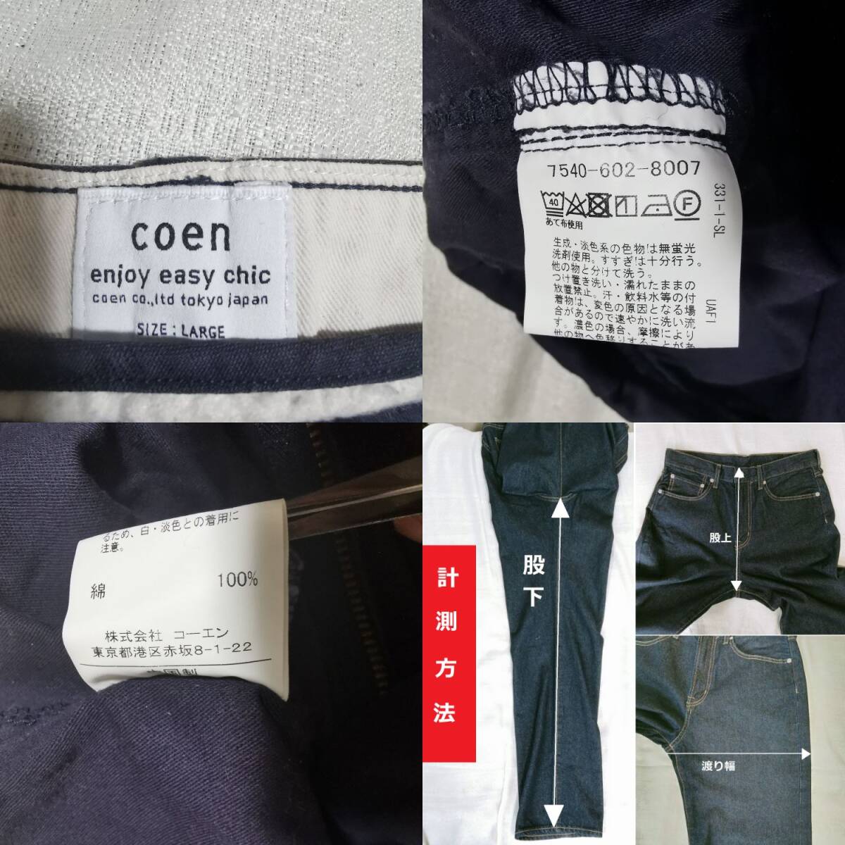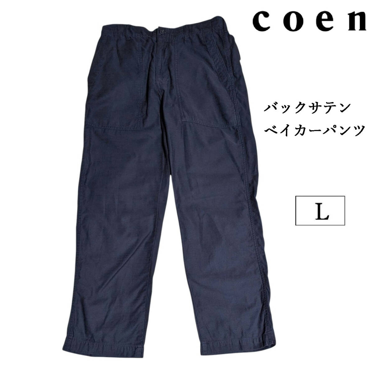 Coen バックサテン ベイカーパンツ テーパード ワークパンツ メンズ L ネイビー コーエン