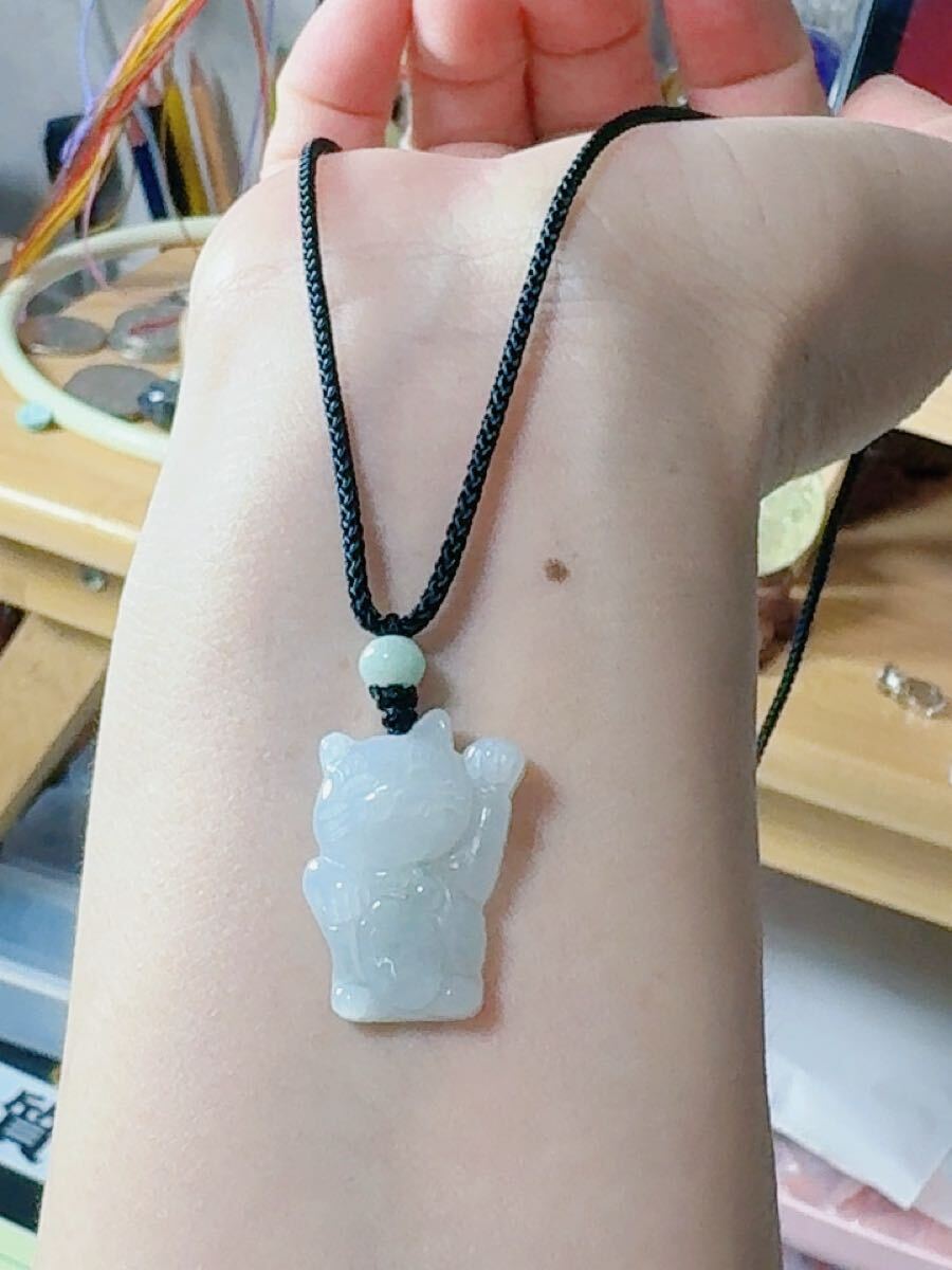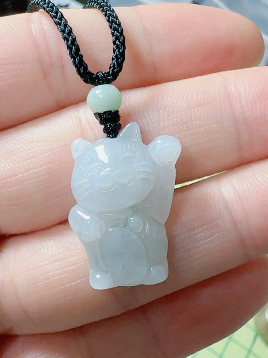 R2-0768天然本翡翠《本物保証》「招財猫」ペンダント 一品一図 高卿品質 一点物 魔除け 昇進 成功 風水 金運 財運 幸運 幸福 縁起物 パワーストーン