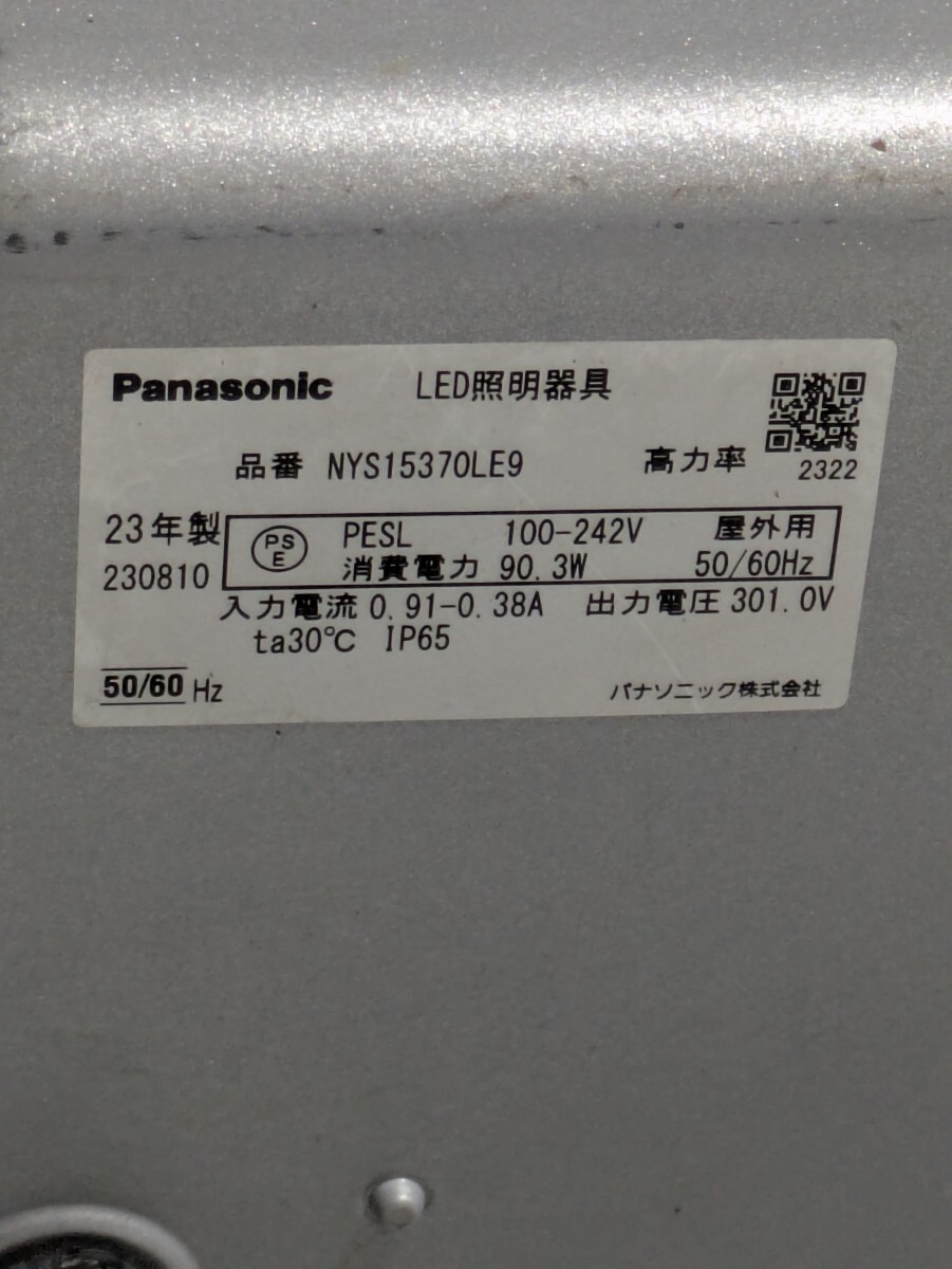 Panasonicパナソニック NYS15370LE9 LED投光器 LED照明器具 2023年製品 動作確認済み