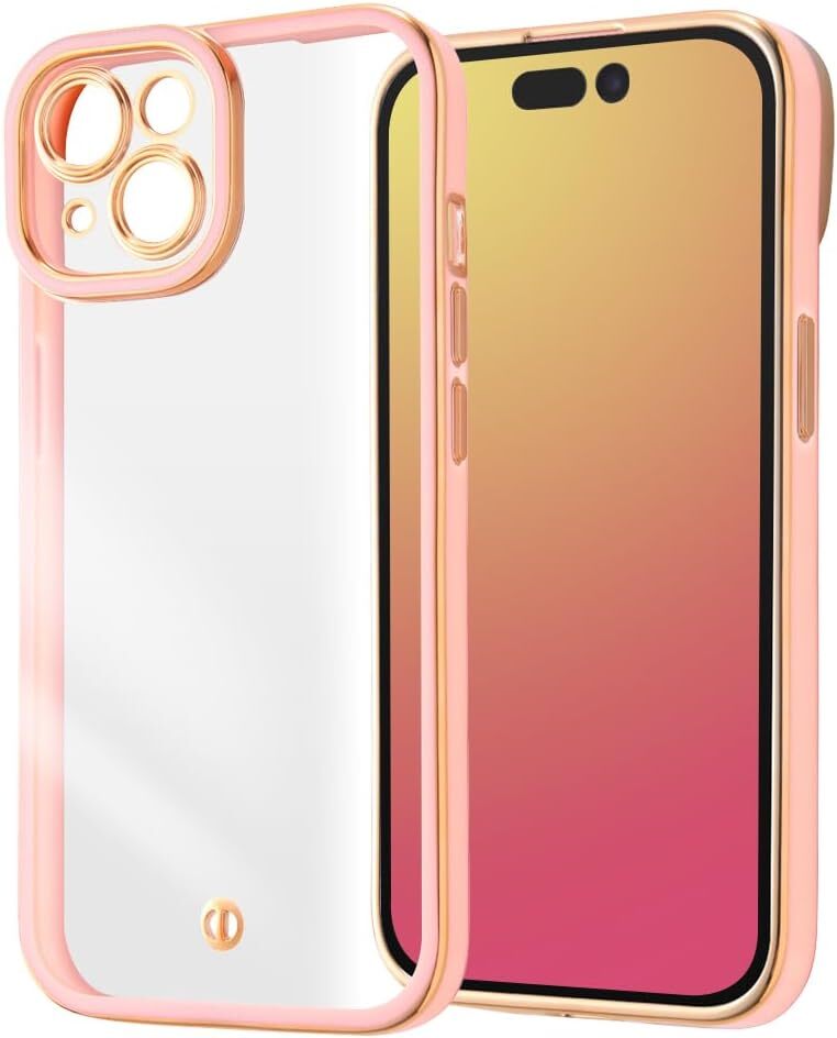 レイアウト rayout iPhone15 ケース クリア メタル フレーム カメラ保護 耐衝撃 メッキ加工 ストラップホール 付き ピンク/ゴールド