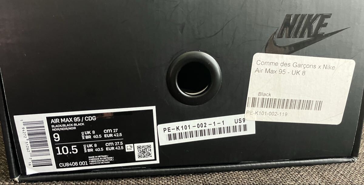 NIKE ナイキ× コムデギャルソンオムプリュス AIRMAX95 エアマックス95 黒 US9になります。