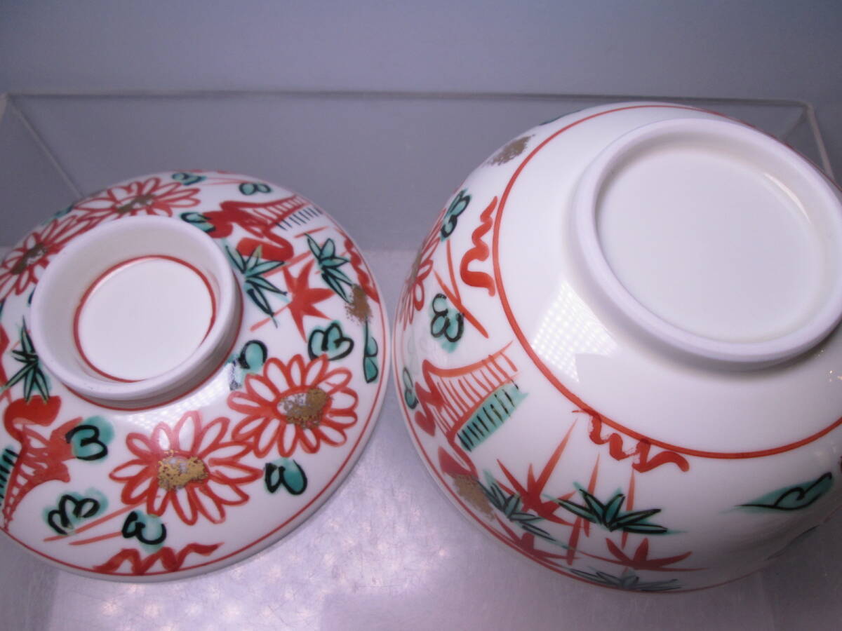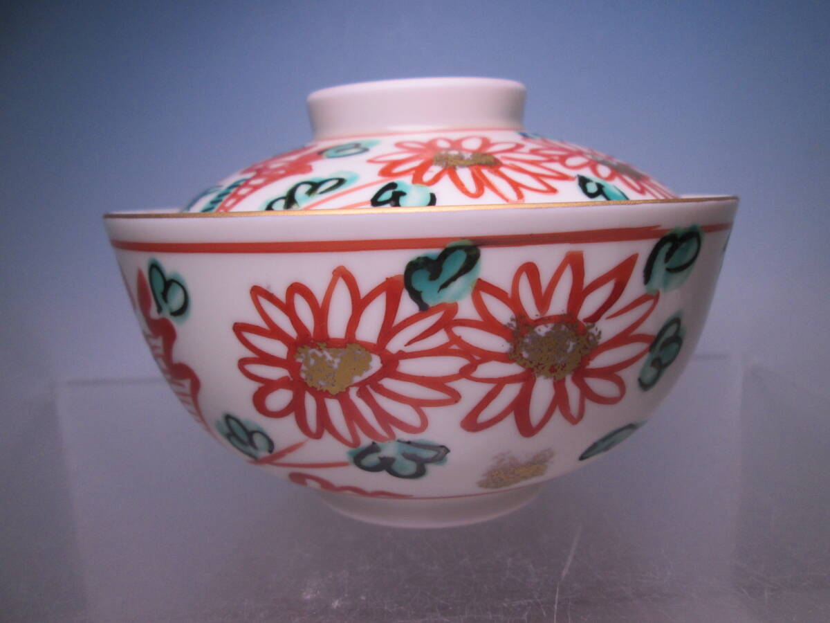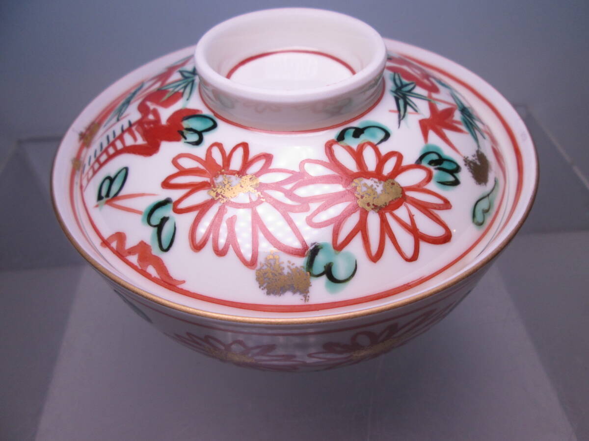 ☆お料理屋さんの器 色絵金彩 笹竹に菊花文 蓋向付 五客 箱無し 蓋茶碗/懐石/割烹/日本料理