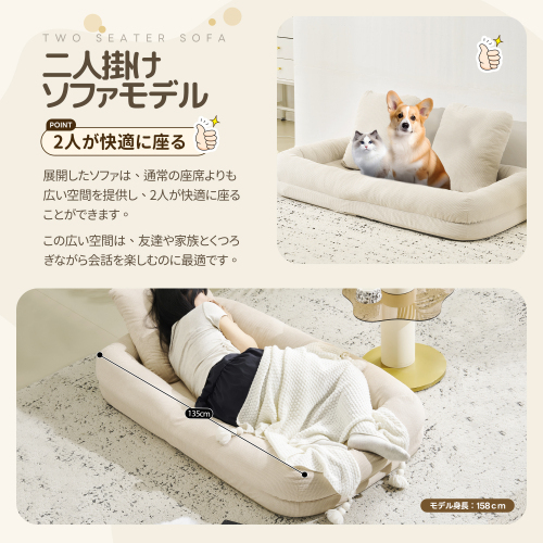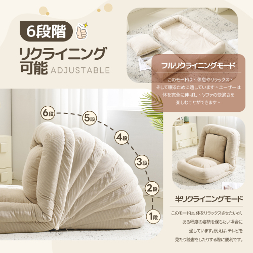 ソファー ソファーベッド 座椅子 6段調整可能 3WAY 1人掛け 2人掛け シンプル ベッド 折りたたみ フロアソファー 寝る 座る 可愛い外観