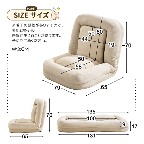 • 【3WAY仕様|使い方自由自在】1台で3通りの使い方ができるマルチスタイルソファ。座椅子・ソファスタイル:読書やデスクワークなど、集中したい時に最適。しっかりと腰を支えて姿勢が崩れにくい。ベッドスタイル:背もたれを倒すだけで簡易ベッドに。昼寝やリラックスタイムに横になってゆっくりおくつろぎいただけます。